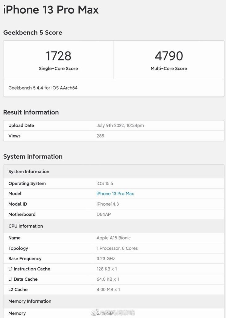 昨天蘋果iPhone 14 Pro和 Pro Max 搭載的最新 A16 仿生芯片的 Geekbench 跑分曝光,雖然單核成績依舊無敵,但多核成績不盡如人意,相較 A15 沒有任何提升,但這個成績似乎並不是其正常水平。