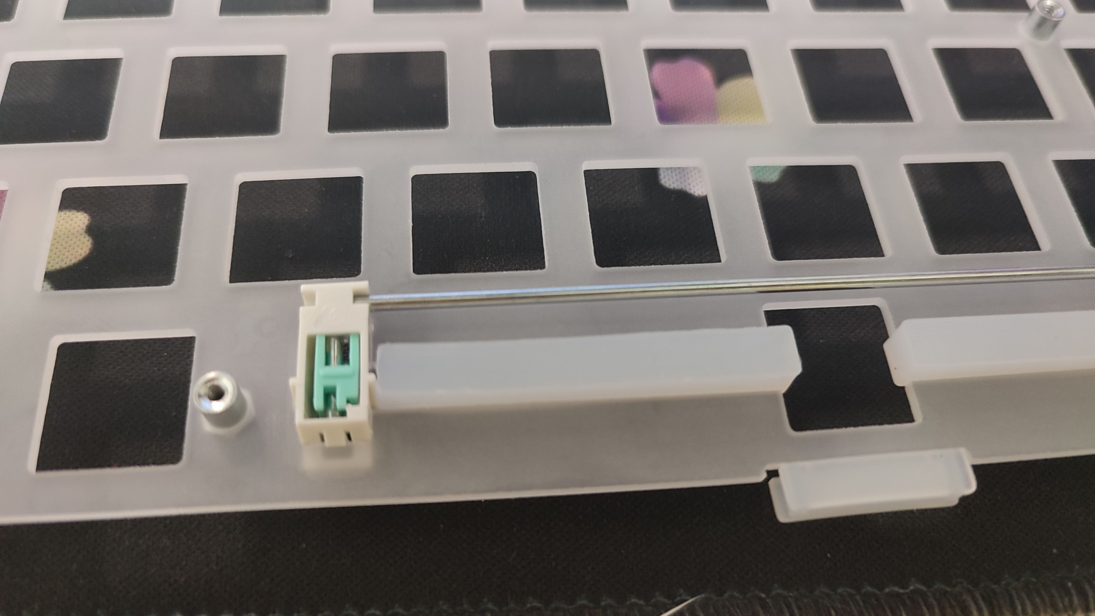讓我感到意外的是DK86標配的衛星軸竟然是DKV3,這一款衛星軸在我之前稿子中也有所展現,具體可參考歐賽得DKV3衛星軸,整體除了鋼絲沒有鍍金塗層之外基本一致,所以大鍵表現不用我多說,妥妥的到手即用。同時空格中間塞入了硅膠以控制空腔音。
