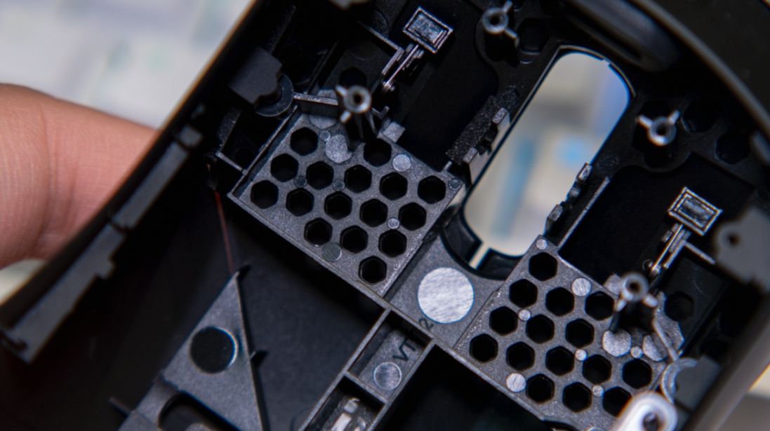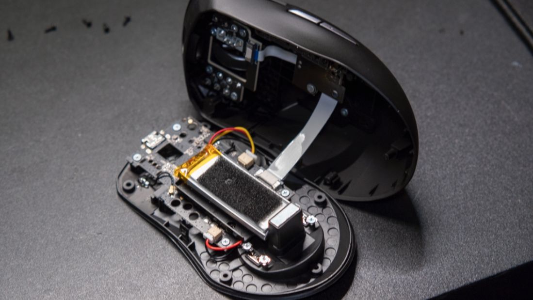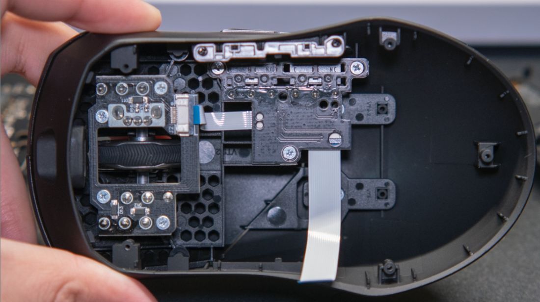 最後來看拆解,擰下腳貼下方所有螺絲即可拆開鼠標。
