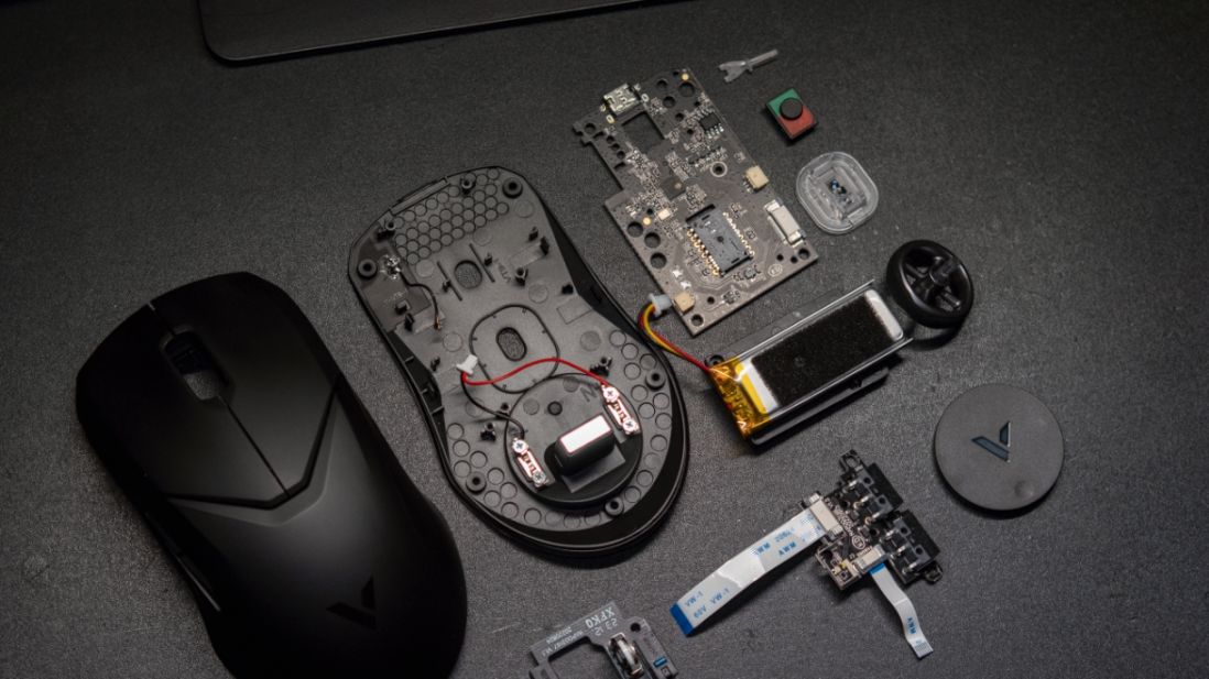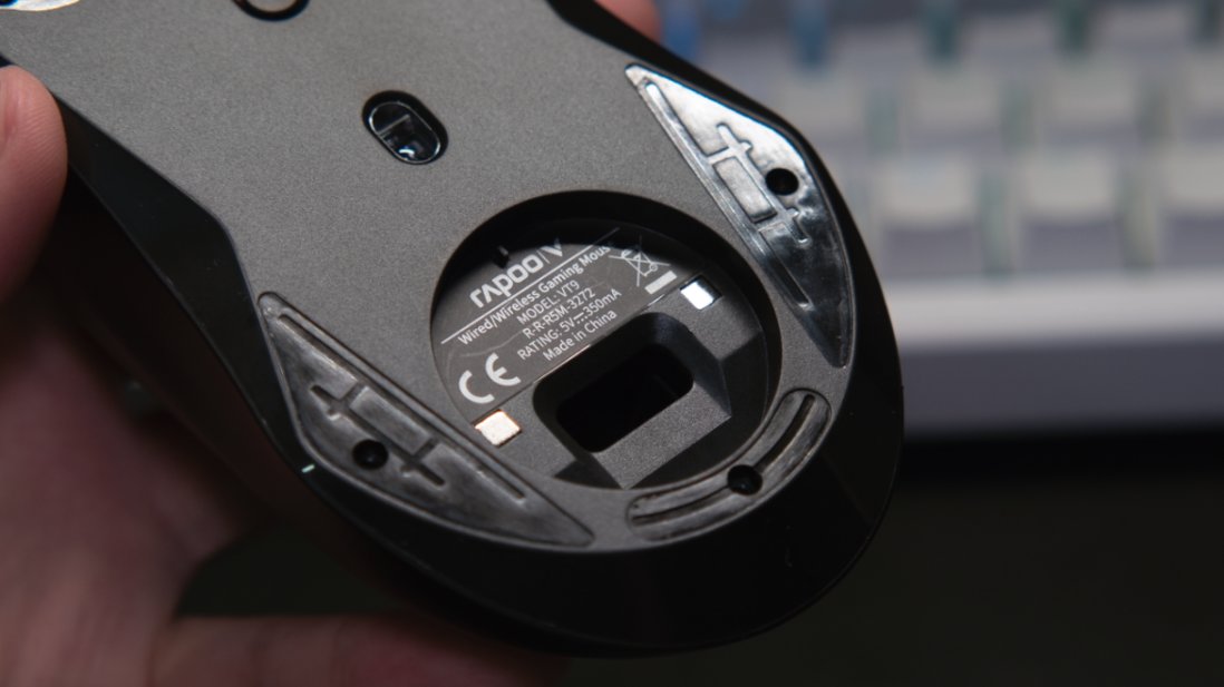 不過,VT9的重量對一個遊戲鼠標來說並不算出色。雖然它採用了一定的減重設計,但因爲內置800Mah大容量電池和無線充電接觸點等原因,整隻鼠標的重量還是顯得有些笨重。