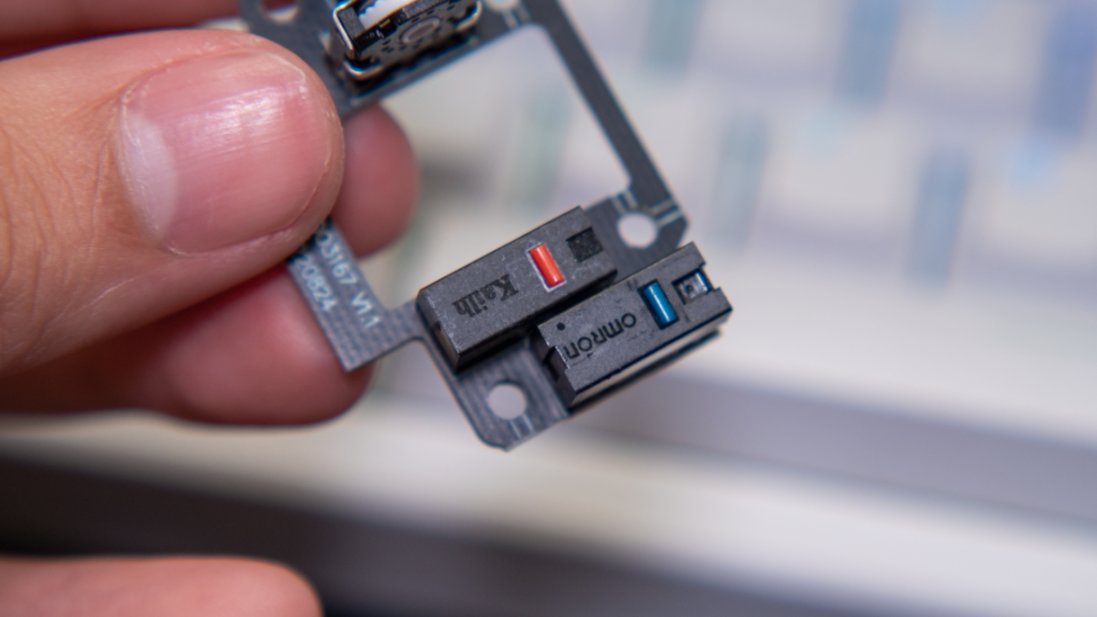中鍵微動來自凱華,主鍵微動則採用了國產歐姆龍藍點,這和早些批次的G903完全相同,我比較擔心它的雙擊問題。大家都知道羅技總雙擊的原因就是用了歐姆龍的微動。