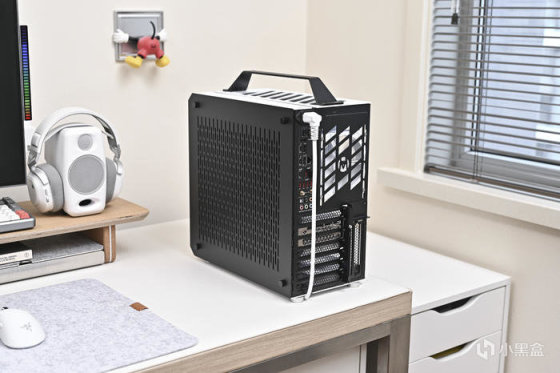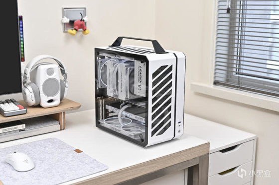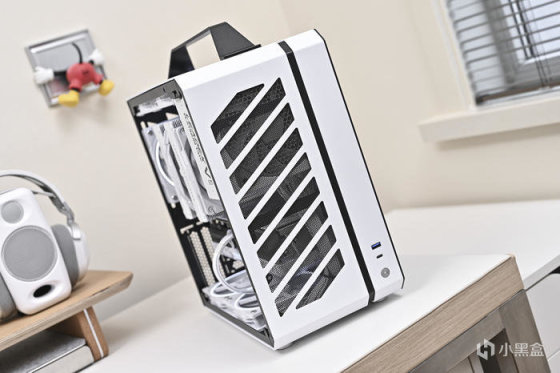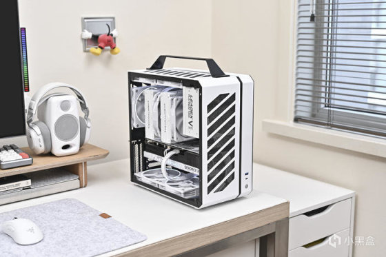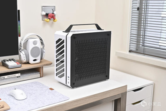 今天裝一臺黑白極簡風格主機,機箱來自機械大師 Meshanic Master C34 AIR 冰川白。整機黑白撞色,尺寸爲:342x185x342mm,約 21.6L,外殼採用 2mm 鋁合金、內殼採用 1mm 鋼板製成,外殼模塊化設計,支持 ITX、MATX、ATX、EATX 主板安裝,支持 162mm 塔式風冷,支持 280mm 水冷,顯卡最大 335mm。這款機箱擁有 C 系列家族多功能安裝方式,可以通過主板安裝位銅柱的位移來實現 ATX/MATX 主板安裝的切換,電源分吊裝、橫裝等安裝方式來適配風冷、水冷模式,吊裝上下可微調達到兼容冷排、風扇的厚度的目的。同時,此機箱支持雙槽顯卡豎裝(限45mm厚度內)。需要注意的是,CPU散熱採用風冷狀態下,電源吊裝, ATX 主板支持最大 ATX 電源長度 160mm,M-ATX/ ITX 主板支持最大 ATX 電源長度 140mm;若安裝水冷,則主板應使用 M-ATX 版型,電源橫裝,最大支持 140mm 長度,上下 3 個檔位可調,以擴展冷排和風扇厚度。電源安裝在最上方孔位時,冷排+風扇厚度不超過 54mm。此外,如果採用 ATX 主板安裝,存儲位只有前面板和擋線板 2 個 2.5寸硬盤位可用,底部 2 個 3.5 寸硬盤位不可使用,如確需存儲擴展,需選擇 M-ATX 主板來安裝兼容。