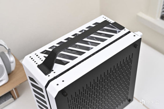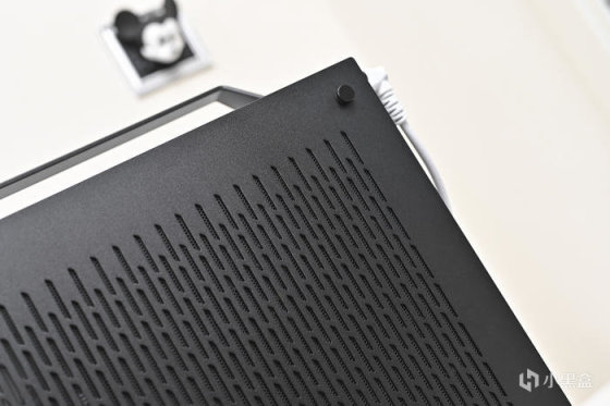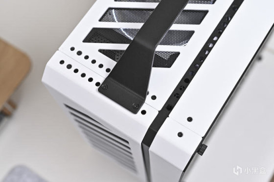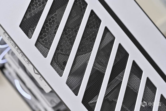 機箱頂部和前面板同樣的 AIR 斜紋開孔通風設計,白色噴塗預貼黑色防塵網。