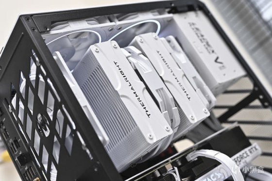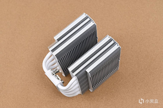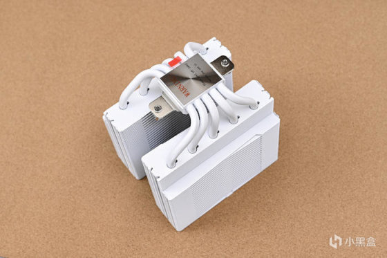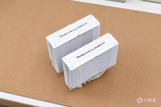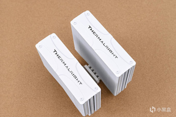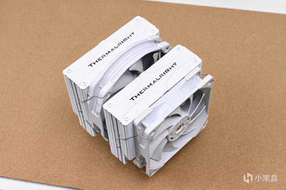 散熱器本體通體白化,尺寸:140mmx121mmx158mm,雙塔均配備金屬頂蓋,上方是利民的標識。