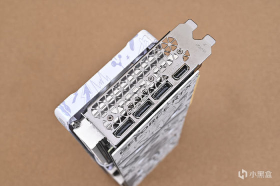 接口方面配備了 3 個 DP 1.4a ( 最大支持 7680x4320@60Hz)以及 1 個 HDMI 2.1 接口(最大支持 4K 120Hz HDR, 8K 60Hz HDR),擋板爲 2 槽位設計,並做了密集開孔散熱,不鏽鋼鍍鎳設計長久不生鏽。
