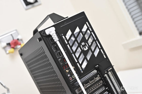 主機尾部主板 I/O 接口及右側 12cm 排風扇安裝位,電源接口上置。