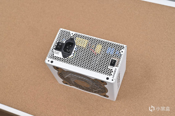 尾部的出風口全鏤空設計,讓電源內部的熱量更容易排出,左側是電源 10A 插頭和開關,最右側還有一個 ECO 溫控模式開關,讓玩家在性能和靜音之間自由切換。ECO“ON”爲節能、低噪優先模式,此模式支持智能低溫輕載風扇停轉技術,更有利於降低噪音;而 ECO“OFF”模式爲散熱效率優先模式,此模式自動檢測環境溫度與負載,隨其增減風扇轉速。