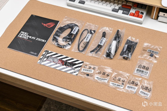 附件是比較豐富的:1 x ARGB RGB 延長排線、1 x RGB 延長排線、4 x SATA 6Gb/s 排線、ROG Hyper M.2 卡、1 x ROG Hyper M.2 卡搭配散熱片、2 x M.2 螺絲包適於 ROG Hyper M.2 卡、1 x ASUS Wi-Fi 移動天線、1 x M.2 Q-Latch 包、2 x M.2 Q-Latch 包適於 M.2 背板、1 x M.2 橡膠軟墊包、1 x Q-connector、1 x ROG 顯卡支架、1 x ROG 貼紙、1 x ROG 鑰匙鏈、1 x ROG 感謝卡、1 x 應用程序與驅動程序U盤、1 x 用戶手冊等。