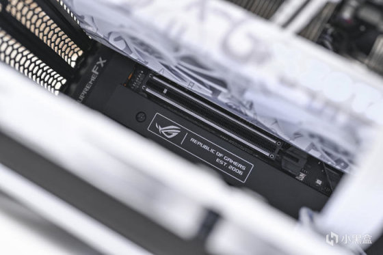主板下方通體覆蓋大面積厚實的散熱裝甲,PCH 散熱器的外觀銀黑條紋組成的 ROG 信仰之眼,無 ARGB 燈效,個人更喜歡這樣有金屬質感的無光設計。兩個 PCIe5.0 x 16 擴展插槽的表面均有金屬保護罩,提高接口強度的同時還可以避免信號干擾,下方還有一個 PCIe 4.0x16 插槽。第一條 PCIE X 16 支持最高 PCI-E 5.0 X16,第二條 PCIE X 16 支持最高 PCI-E 5.0 X 8 (以上 2 根共享 CPU PCI-E 5.0 X16,提供 X16/X0 或 X8/X8 的組合),最下方PCIE x16 實際爲PCIe 4.0 x4+x4插槽,通道來自於 Z690 芯片組,標準的單 x8 或者單 x16 卡安裝在此插槽時,最大 x4 模式運行,如搭配 ROG HYPER M.2 CARD,可以完整使用轉接卡上兩組 x4。