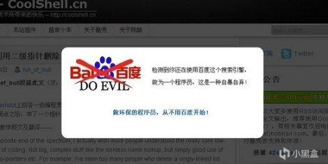 此外,耗子叔也非常有趣,他在个人博客酷壳做了一个功能,即从百度搜索进入到酷壳的,统统都会被拦截,理由是作为一名程序员,如果还在使用百度这个搜索引擎,简直是一种耻辱!相比于当下很多人认为英语无用论的环境,陈皓一直鼓励大家学习英文,多从互联网上汲取知识,不要局限在百度之中。