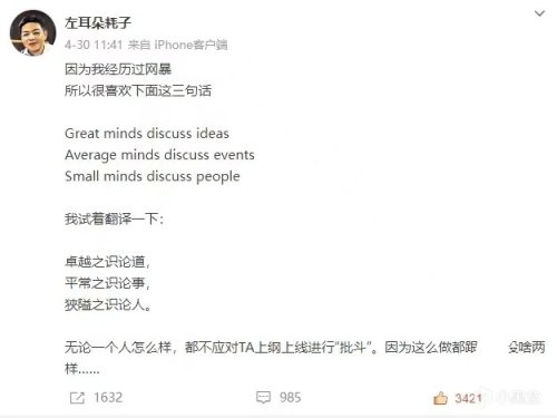 作为一名编程届的老前辈,耗子叔自然也经历了无数风风雨雨,他在账号最后一条博文中写道,因为自己经历过网暴,所以很喜欢下面这三句话,卓越之识论道,平常之识论事,狹隘之识论人。无论一个人怎么样,都不应对TA上纲上线进行“批斗”。如今陈皓突然离我们而去,他的博客依然是宝贵的财富,他的技术精神也值得宣扬继续传承下去......