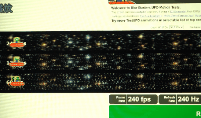 ▼我用相機的拍攝了一段UFOTEST的畫面,可以清楚的看到,在240Hz高幀率下,畫面的流暢程度顯著較低幀率更高。
