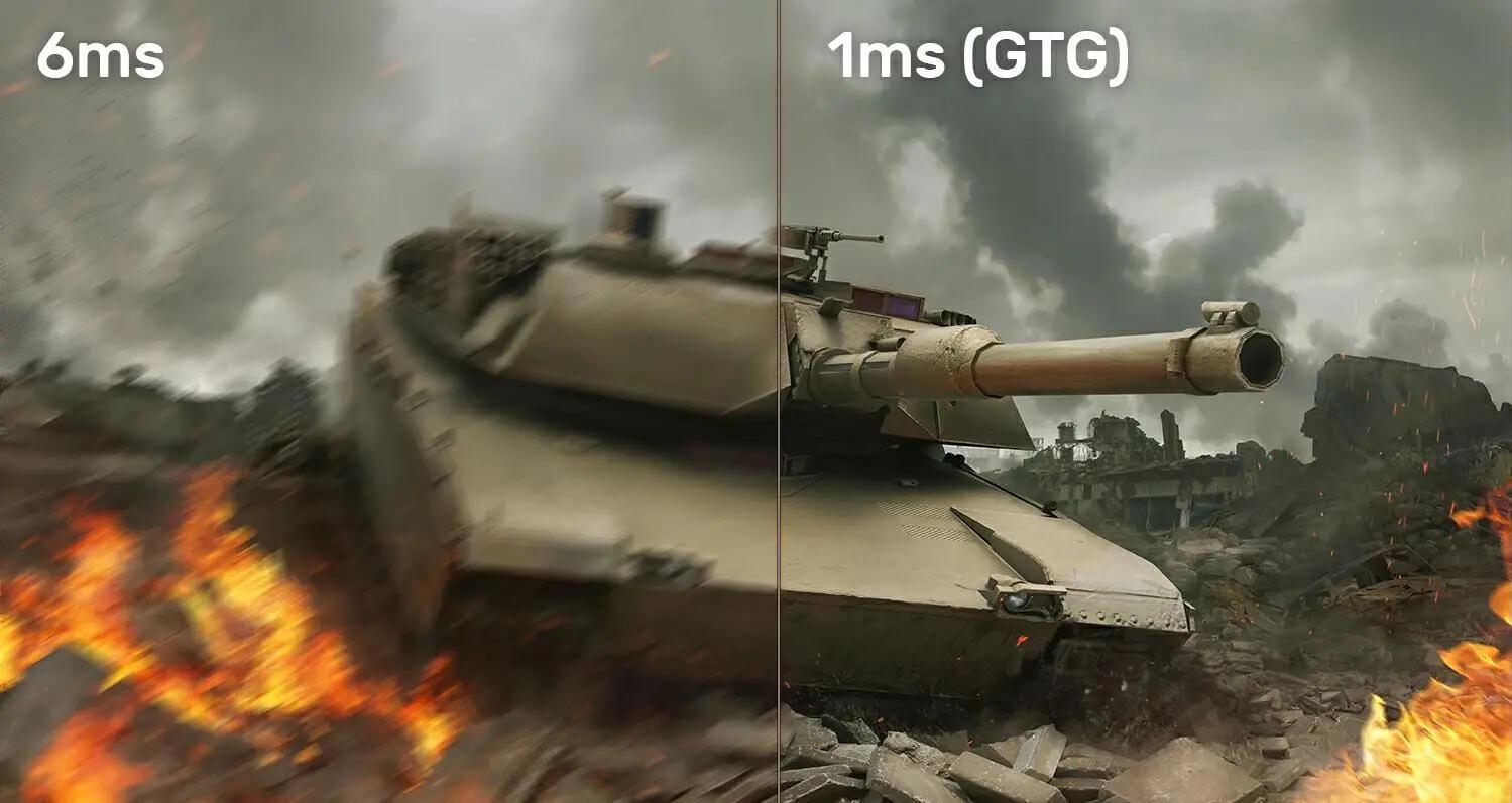GTG與MPRT是完全不同的概念,GTG表示的是一個像素在兩種顏色之間變化所需的時間,考驗的是面板的真實素質和硬實力。這個時間越短,就越能降低屏幕的拖影,屏幕的反應更迅速。