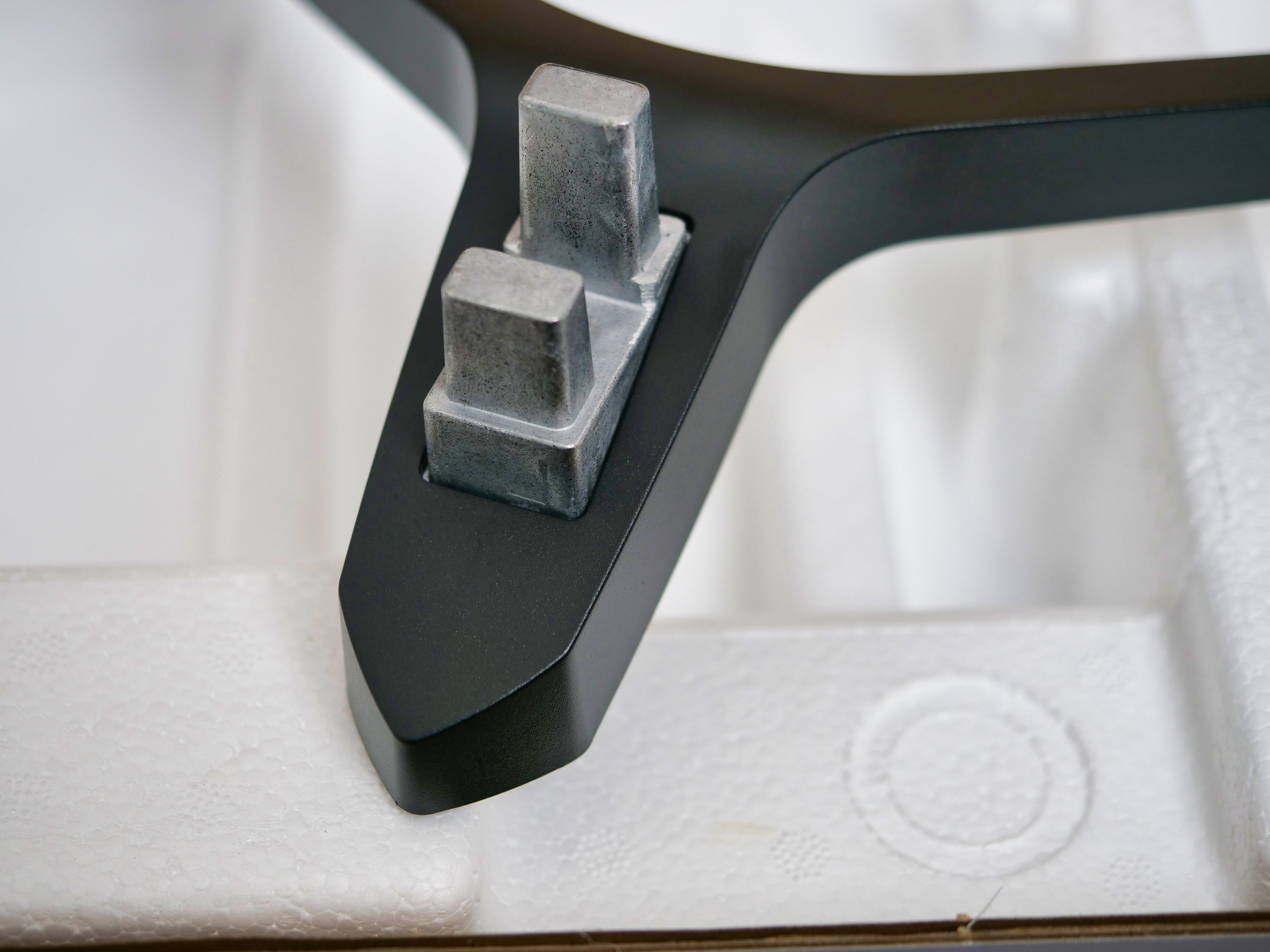▼細看一下用料,對接咬合部位爲實心金屬材質,用料相當紮實,保證了顯示器在放置過程中的穩定性與牢固性。