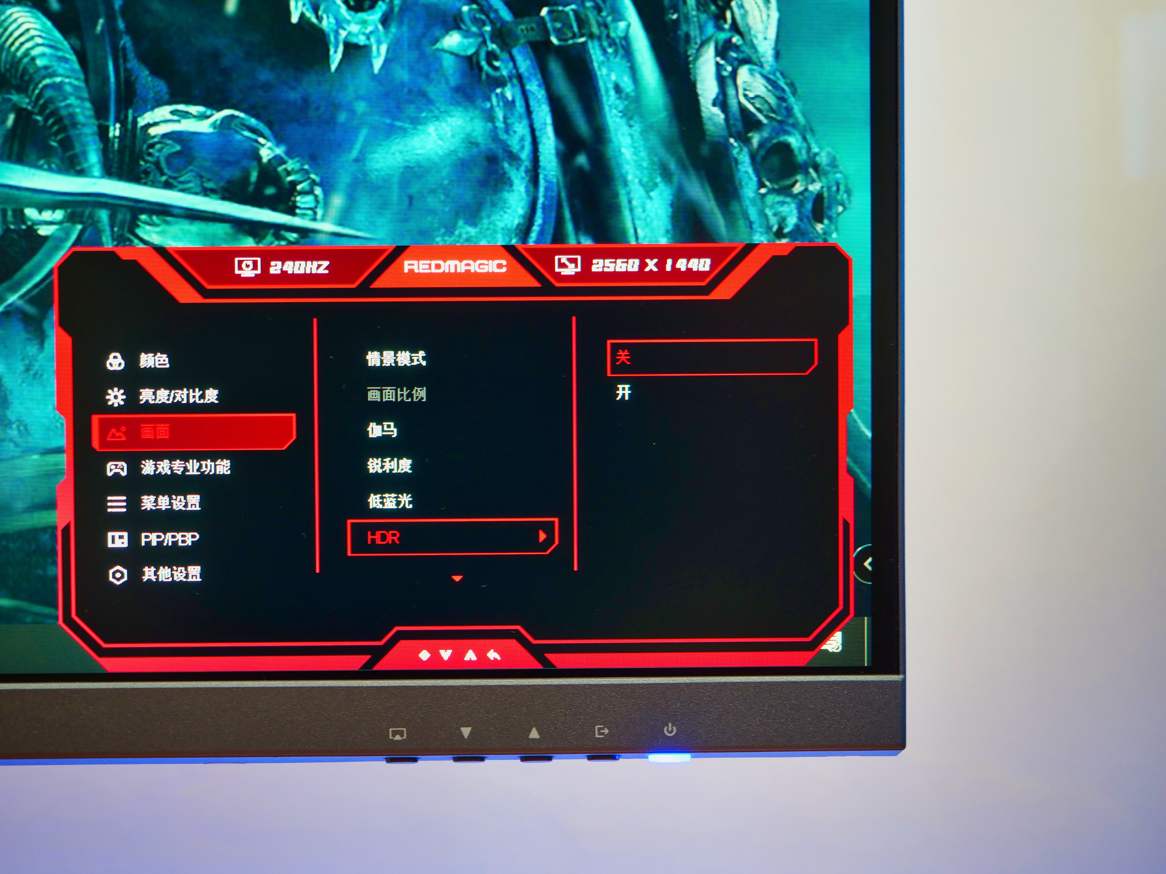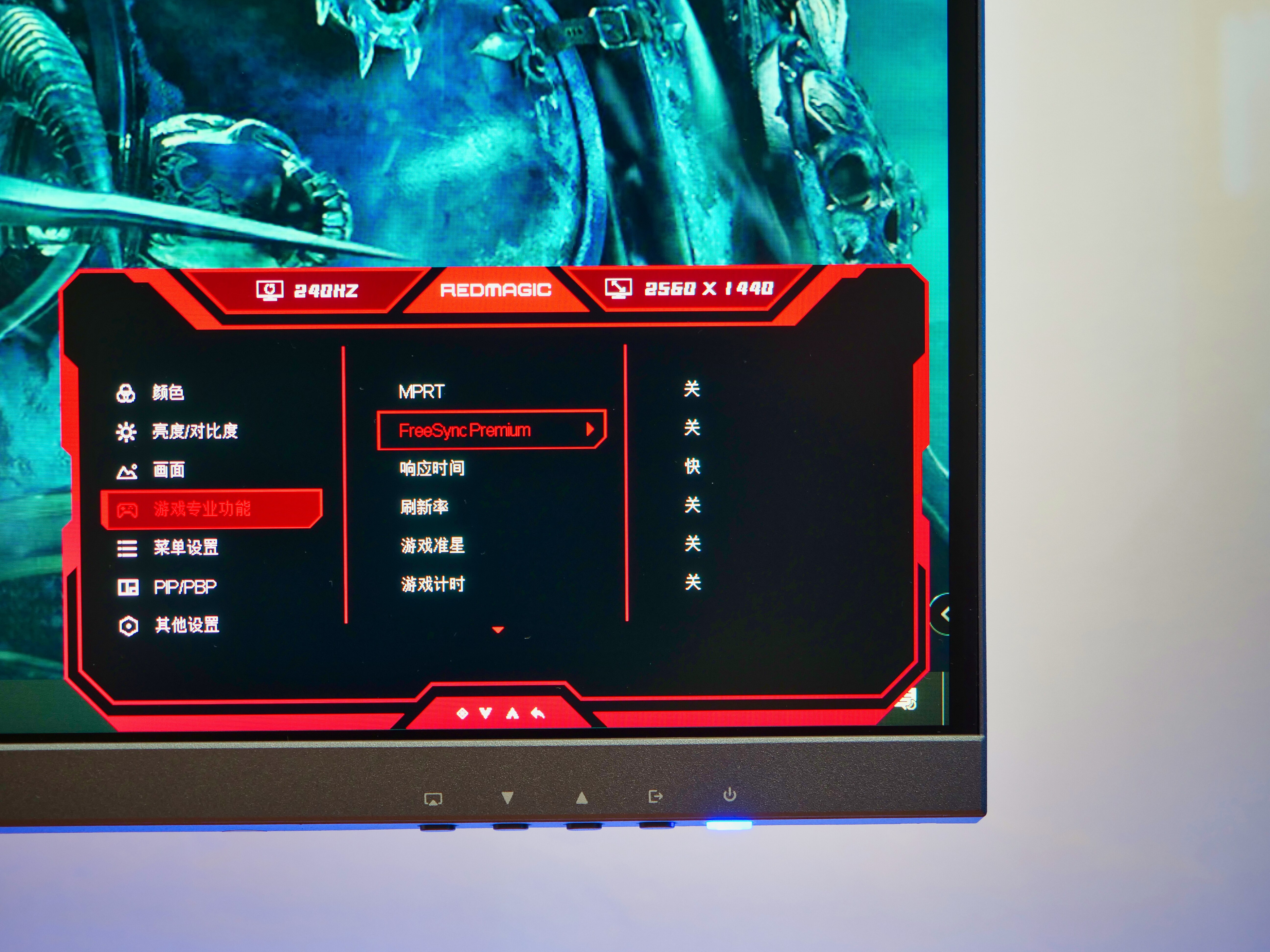 紅魔電競顯示器2K版使用的是友達廣電的8.0 Fast-IPS面板,最高可以支持240Hz的刷新率,同時可以達到1ms的灰階響應(GTG)時間,屏幕峯值亮度400nit,支持開啓HDR。