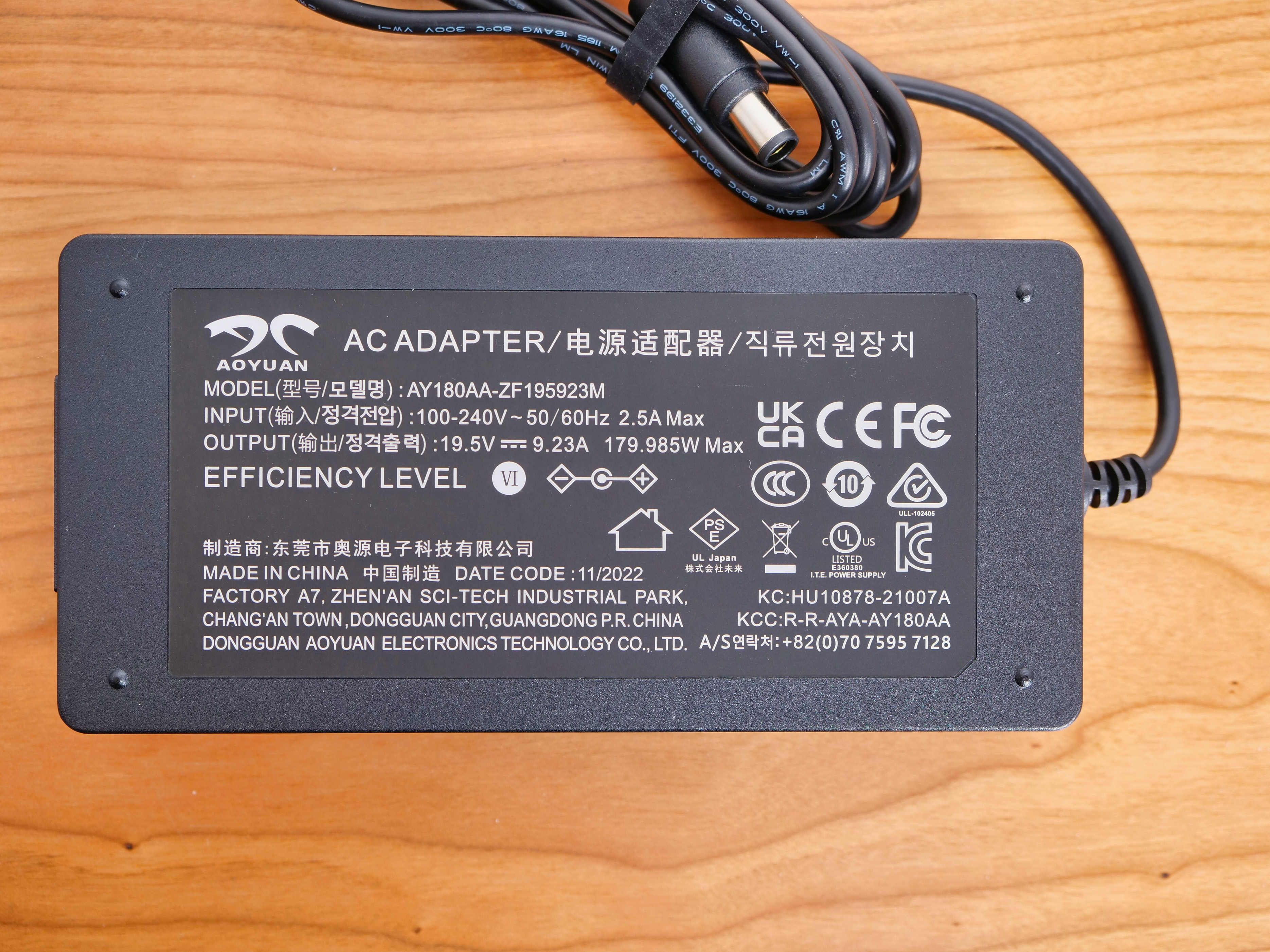 ▼由於顯示器本身支持Type-C接口90W反向充電。所以外置電源的功率比較大,直接給了一個180W的DC電源適配器,非常夠用了。