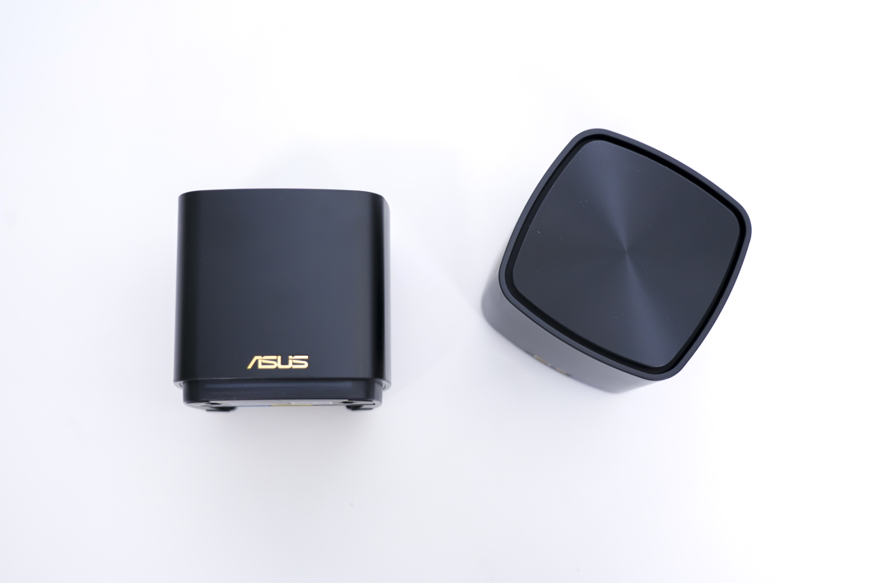 不同于以往的路由器外观设计,华硕灵耀AX魔方Pro咋一看像两个小音响,官方有黑白两色可选,为了搭配我的办公以及居家环境,我选的是低调简约的黑色。去了解之后才发现,这个设计灵感来源于中国传统设计“天圆地方”的概念,路由器顶部是同心圆设计,圆润不锐利,咋看下去仿佛平平无奇,在灯光下会看到一圈圈光晕,非常有设计感;