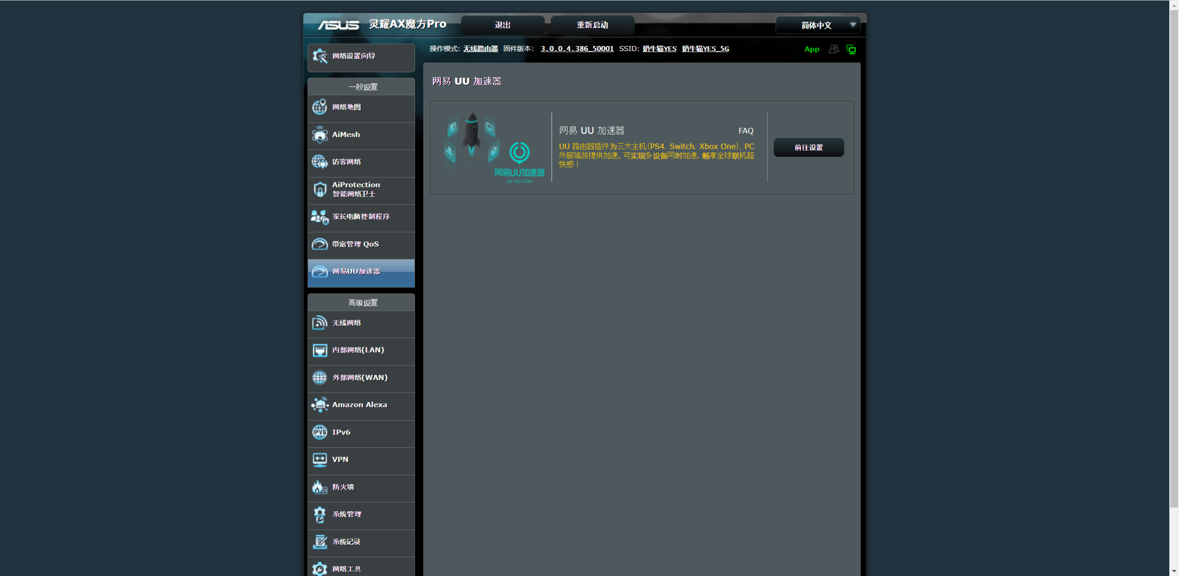 至于游戏加速,华硕是内置了网易UU加速器,这也是当前唯一合法且正规的加速器,支持 PS4、Switch、Xbox、PC 全平台主机加速,并可实现局域网内多设备同时加速,主机电竞玩家应该比较看重这个功能。