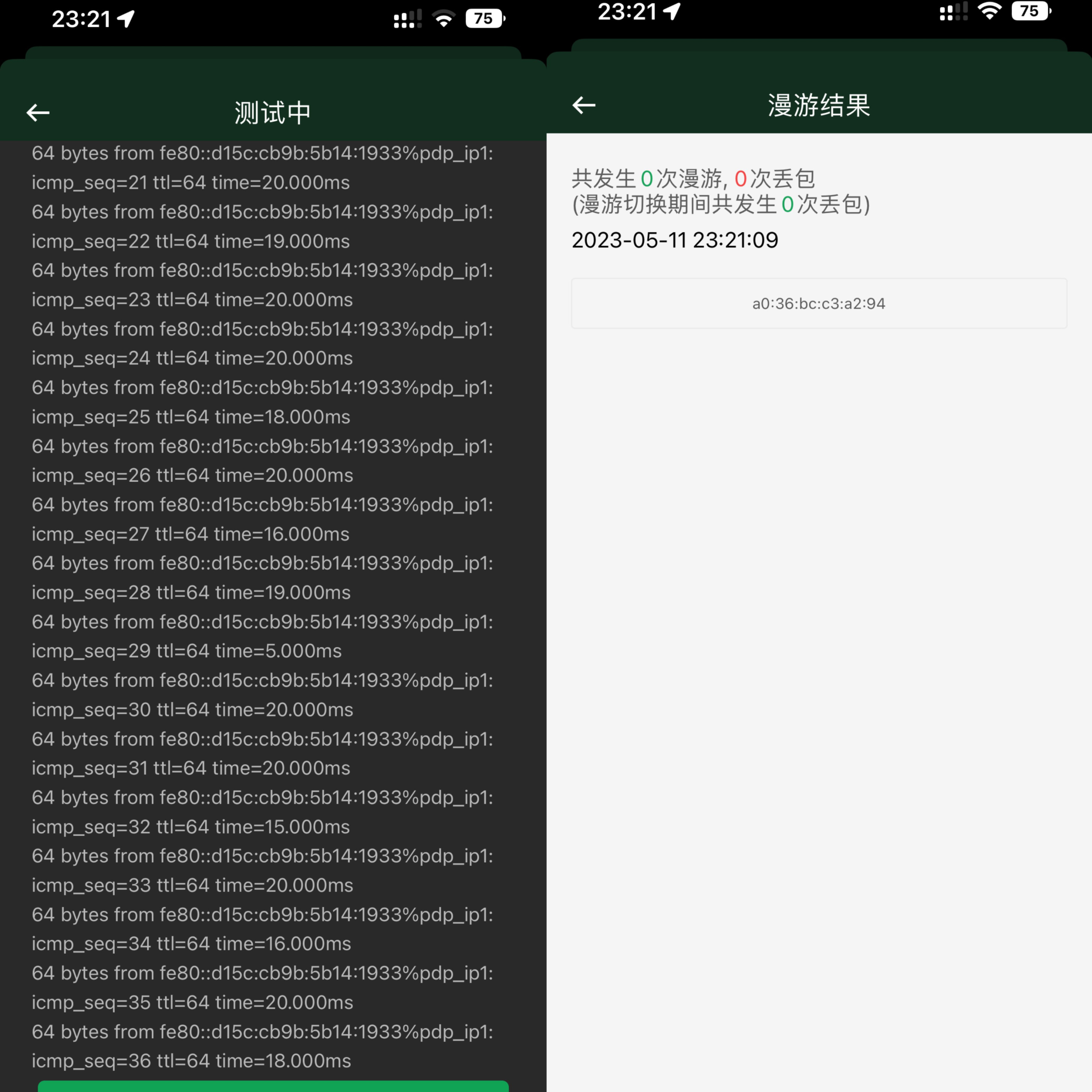 通过漫游测试,在全屋走一圈, 可以看到丢包率为0,信号极强!