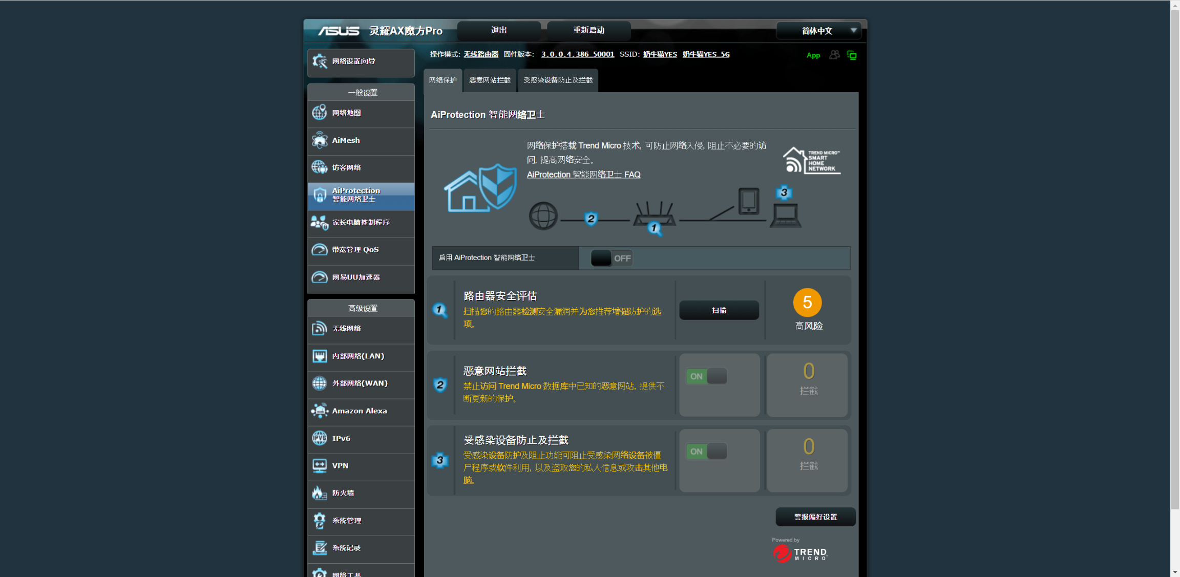 华硕还有自带的AiProtection 智能网络卫士,这个工具可以对对网络实时监控,包括恶意网站拦截、双向IPS等等,极其强大!