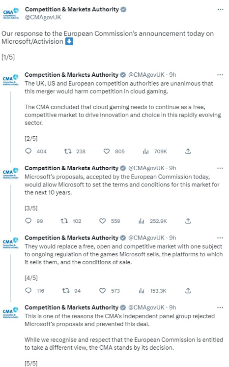 而在此前,CMA以本次收购交易成功后,将会对未来快速增长的云游戏市场产生重大影响,导致未来几年英国游戏玩家的创新减少和选择减少为理由否决了微软对动视暴雪的收购议案