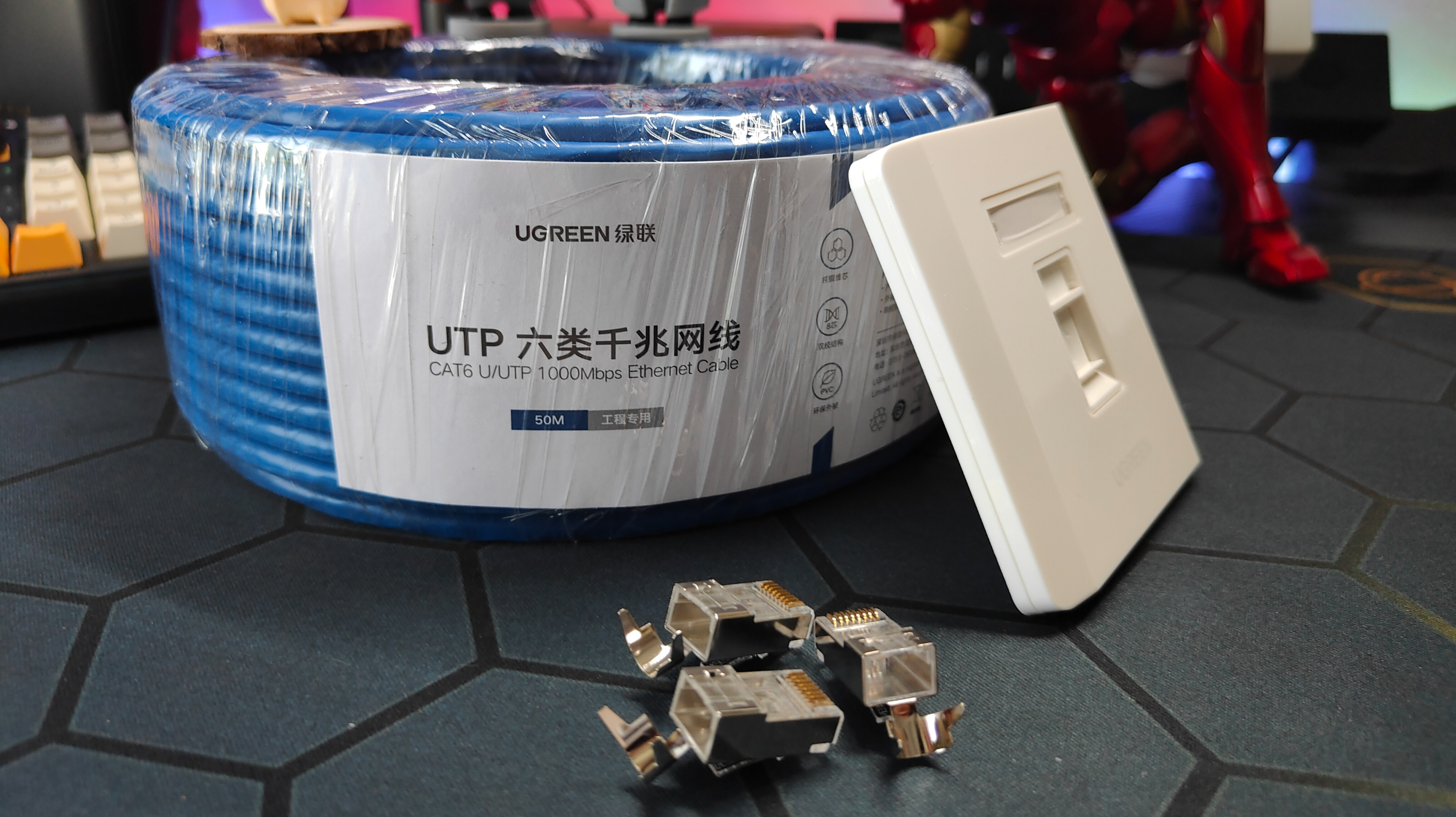 簡介:由於本次改造需要更換牆內原本的CAT5網線,所以弄了套綠聯的半成品線材自己弄,相比成品線更便宜,同時也更方便走線。