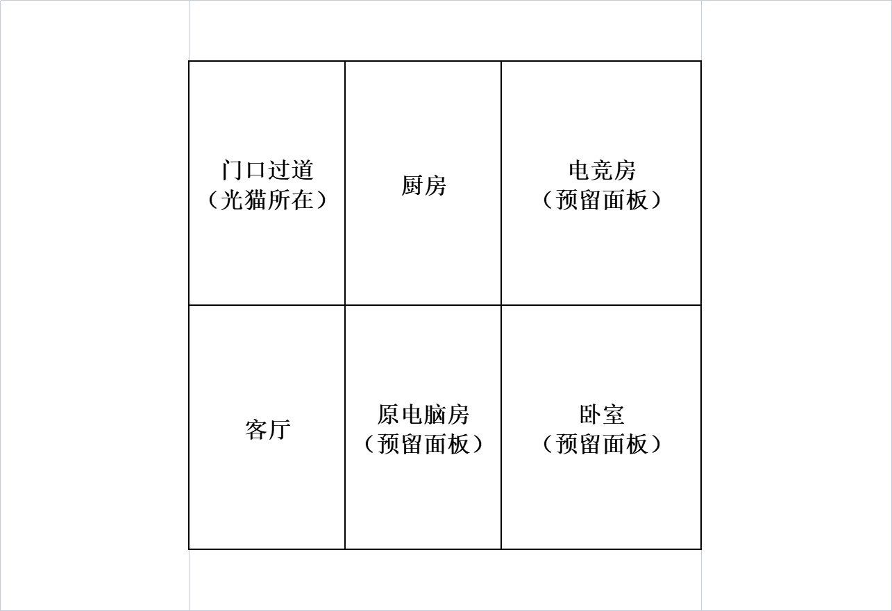 這間住房入戶的寬帶爲江蘇電信的標準家寬套餐,帶寬爲200Mbps上行+30Mbps,戶型圖如下圖所示,真實面積在100-110㎡中間: