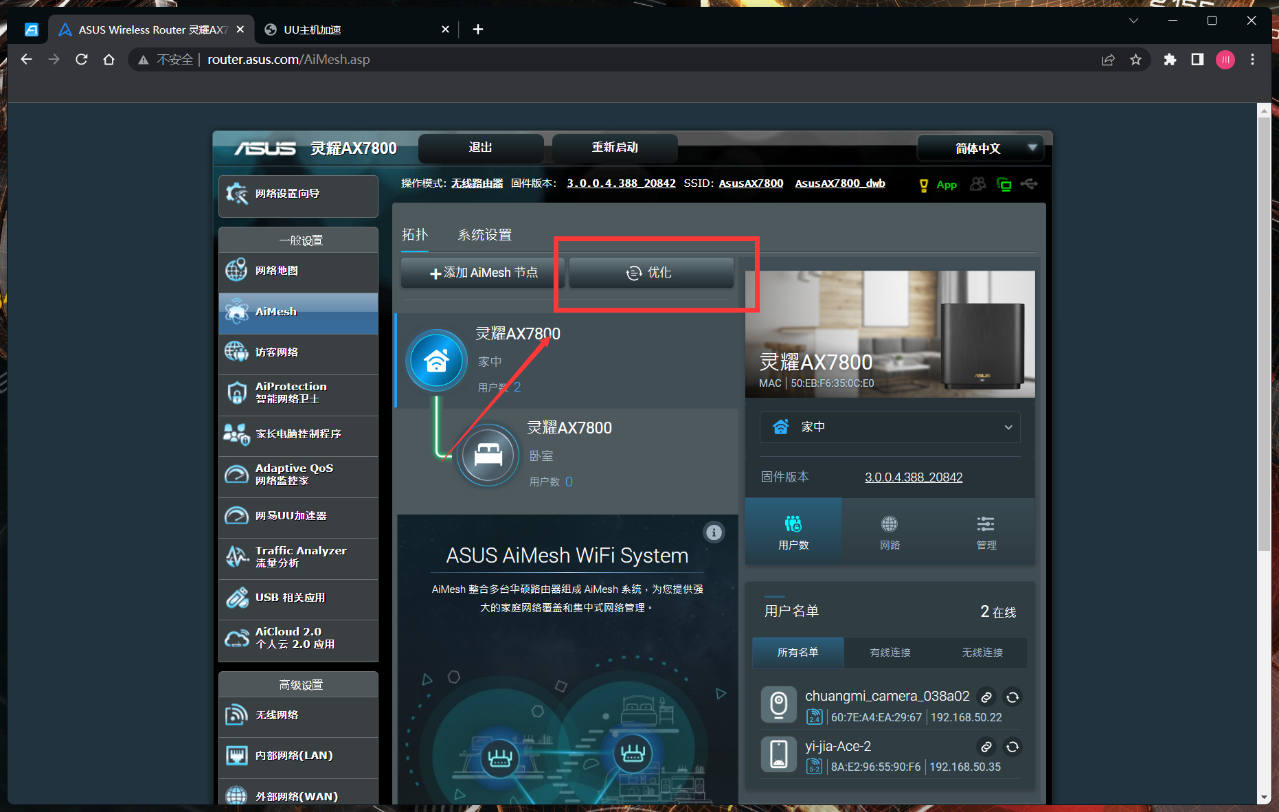 配置完成後正常不需要再去動後臺,如果設備連接無線網絡的穩定性比較差,可以選擇在PC端網頁後臺或者手機App上的AiMesh選項中點擊優化,一般就能解決信號差的問題了。