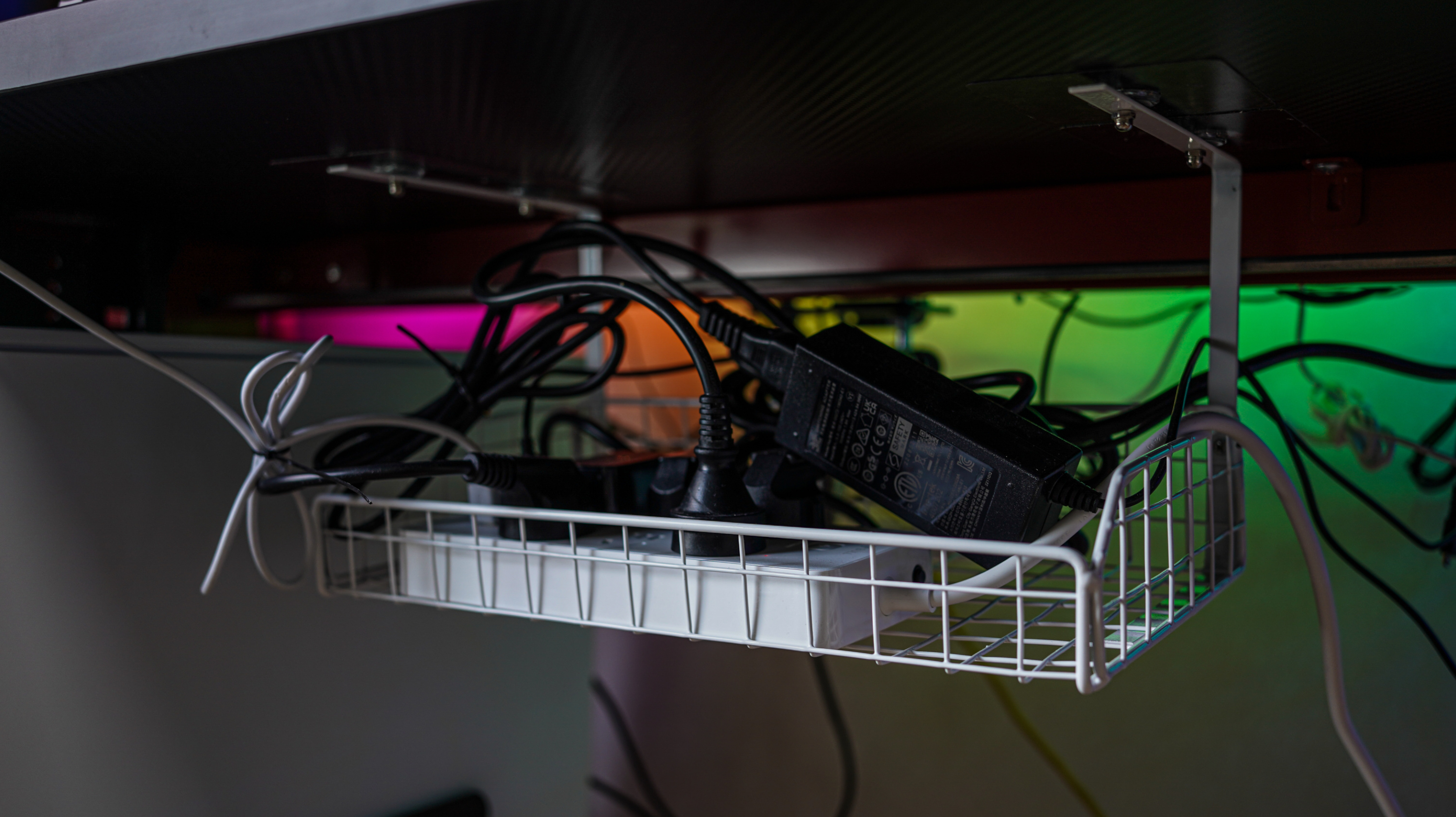 最後強烈建議各位買一兩個下圖這種桌下收納架,這種大號的價格在二十塊錢左右,外置排插、設備外置電源和線材都可以很好的收納,中間鏤空的位置也可以用來理線,屬於便宜好用的神器之一。