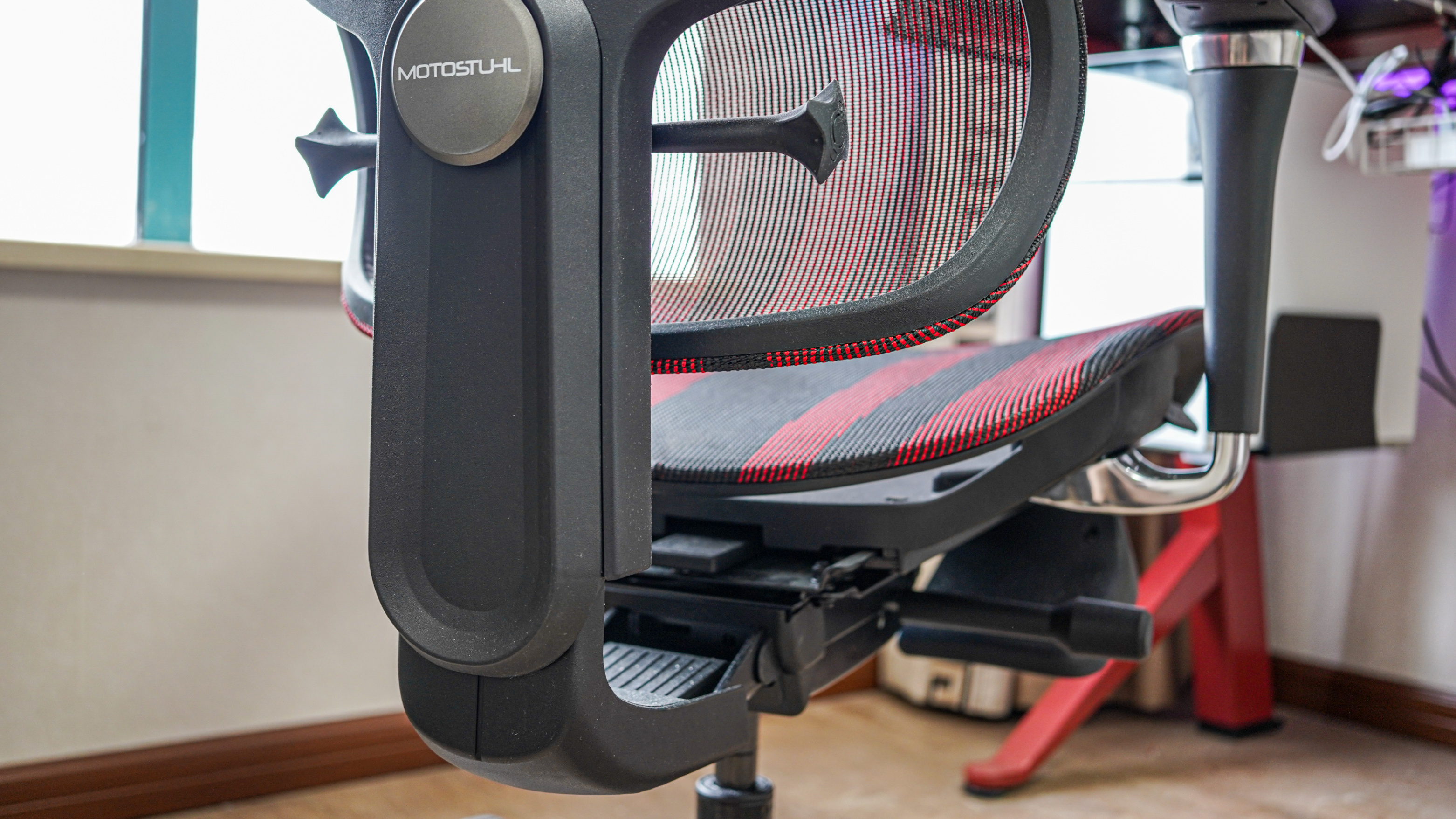 首先我自己目前在坐的工學椅就是摩伽S8,體驗非常不錯,主要是結構設計確實比傳統結構要穩定很多,兩側也帶了電競感十足的氛圍燈,當地有山姆的朋友建議去線下自己試一下。