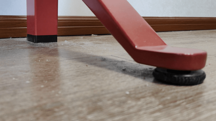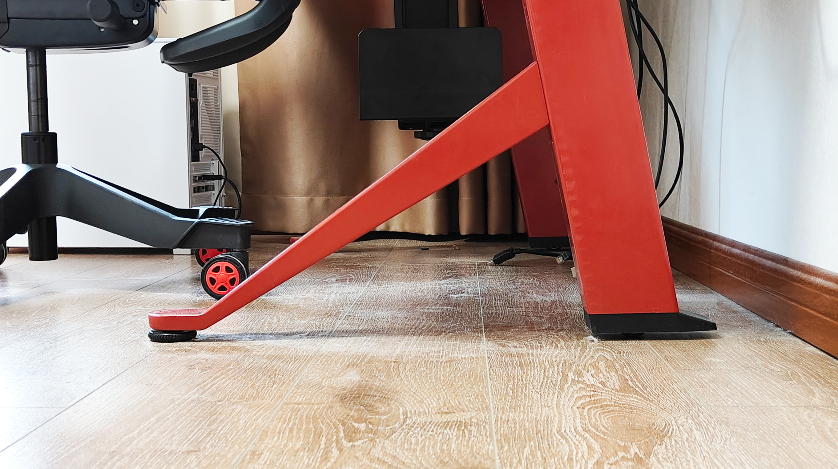 最後是集成度,這款電競桌集成了不少實用小配件,比如高度降到最低自動釋放用於移動的腳輪,雖然平時肯定用不到,但搬家或者二次改造就很有必要了,不僅拖動更省力,也不容易劃傷地板和瓷磚。