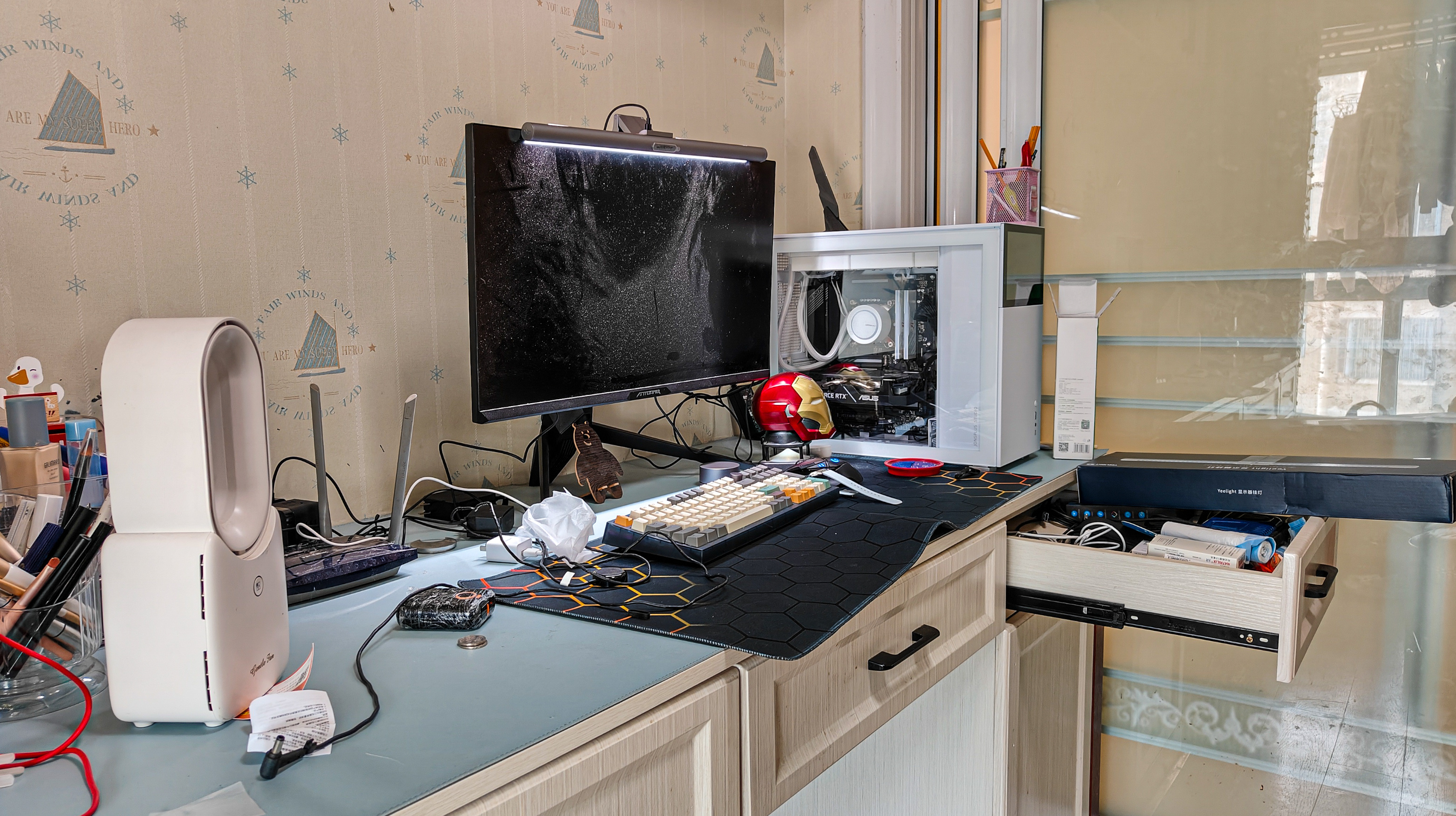 最後就是燈光了,由於不差錢所以選擇了桌面燈光中個人認爲各方面都比較合適的易來系,相信用過的都知道實際亮度和燈效控制有多舒服,米家手機App或者PC端App控制都可以,可以說除了貴以外毫無缺點。