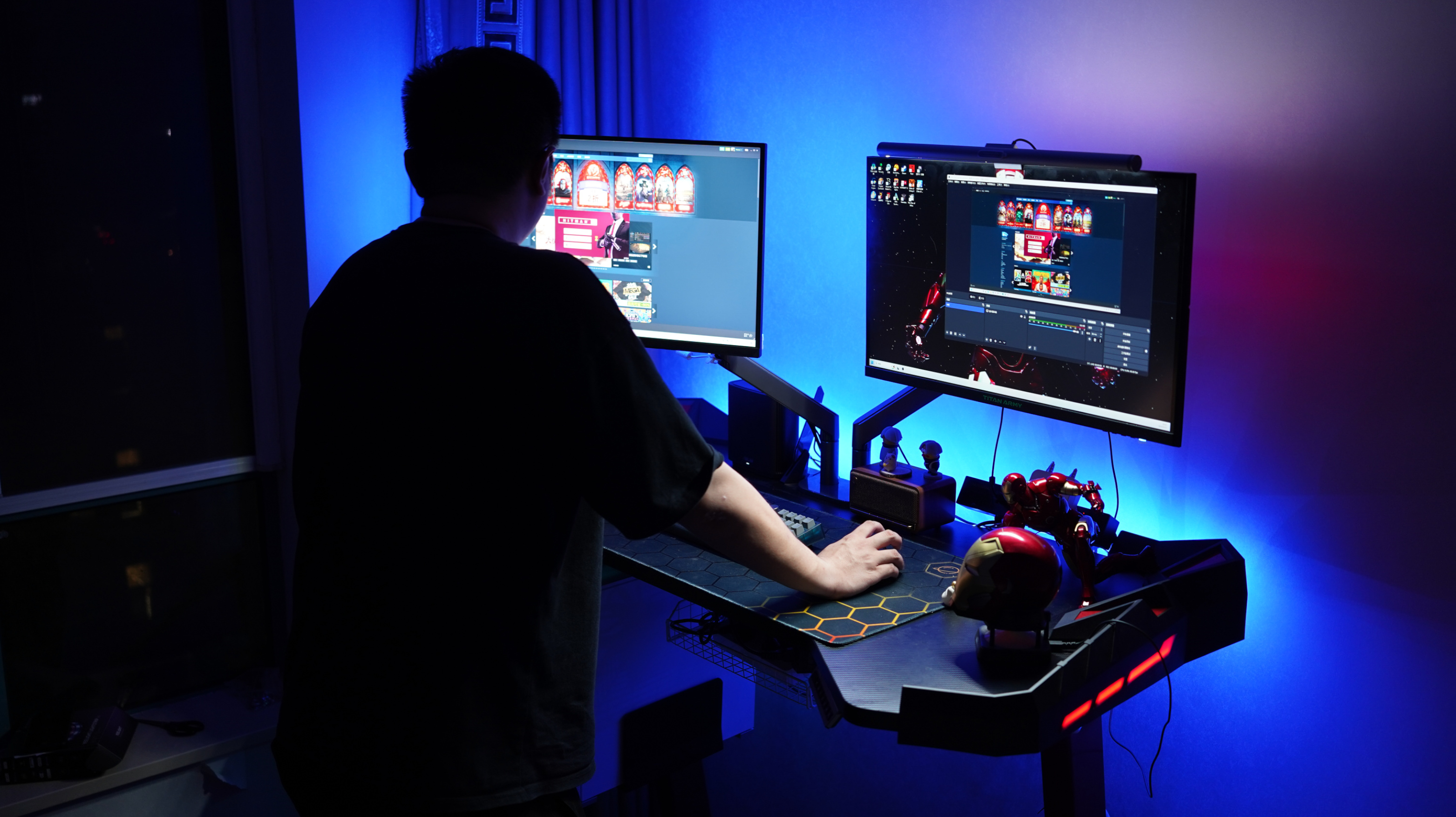 很多想玩燈的朋友不知道燈帶貼哪兒,正常貼桌面背部側面和顯示器背部這兩個地方,開啓後光打在牆上會非常漂亮,想要純淨的燈光還得做理線,不然線材會有遮擋,另外易來燈帶啥都好就是原裝的雙面膠壽命不太行,可以自己買點納米膠備用,不粘了就自己換一下。