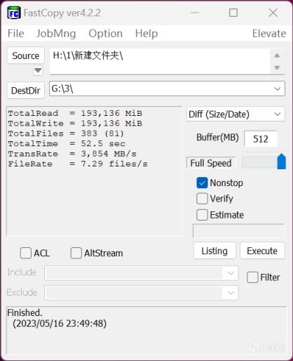 从一个主流的PCIe 4.0固态硬盘中,拷贝一个188GB左右的游戏文件到星曜X4 PRO 1TB,里面包含383个零碎文件,耗时只需要52.5秒,此时就处于SLC Cache范围内,体验还是不错的。