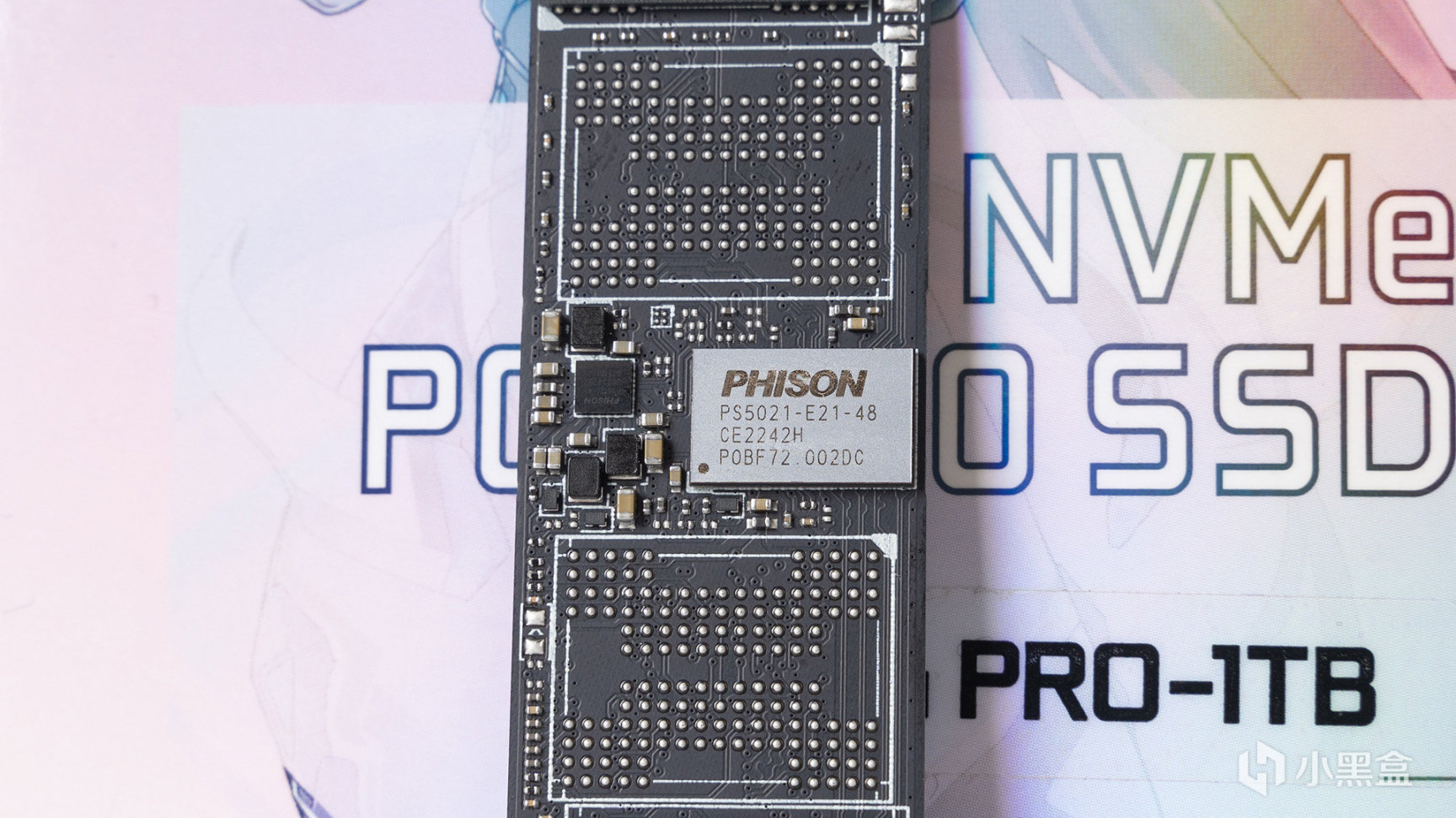群联PHISON PS5021-E21T主控,采用Cortex-R5处理器和TSMC 12nm工艺打造,基于PCIe 4.0x4规格和NVMe1.4协议,支持第四代LDPC ECC技术,拥有四条NAND通道可支持TLC和QLC颗粒,平均功耗只有4.6W,该主控在影驰星曜X4 PRO 1TB上,官方标称连续读取速度为5000 MB/s,连续写入速度为3500 MB/s。
