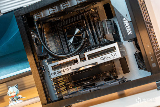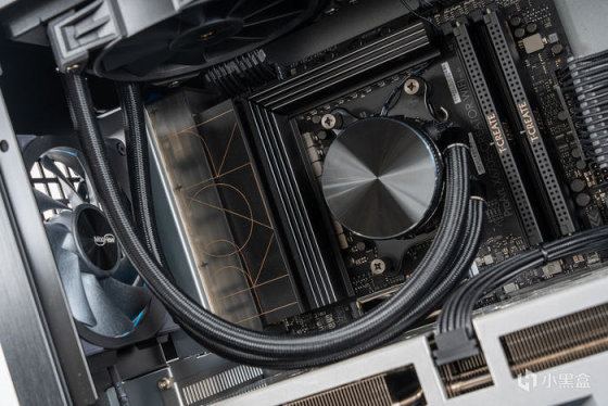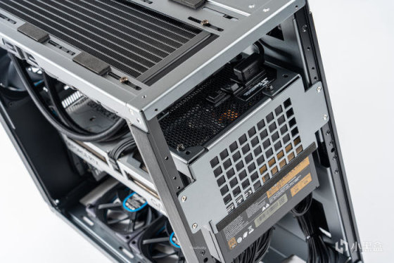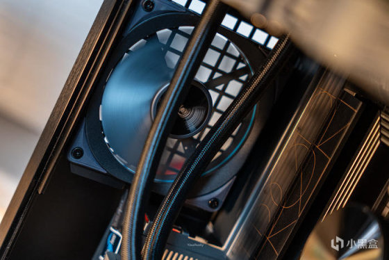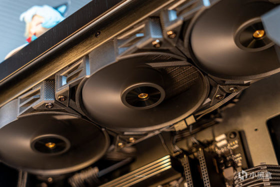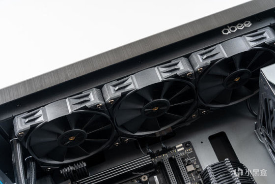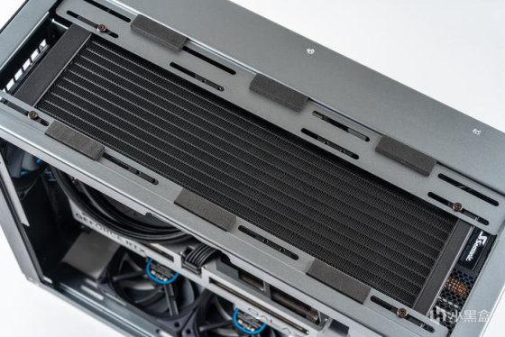 頂部面板打開後冷排位的360冷排,可以看到頂部冷排位爲靠側板偏移安裝