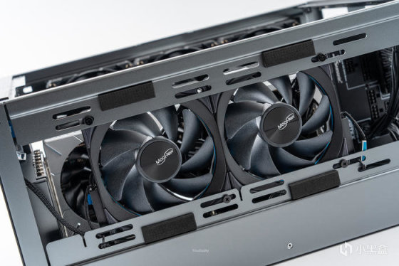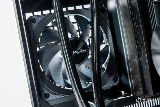 底部冷排位上安裝的兩把磁吸在一起的海韻MagFlow風扇