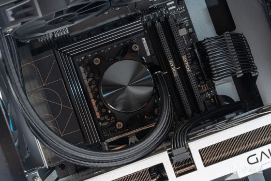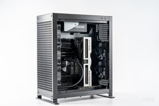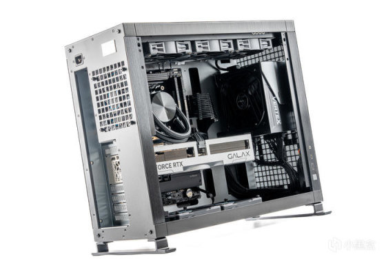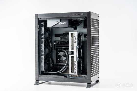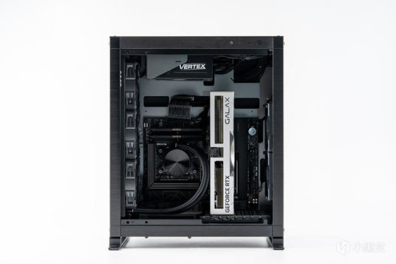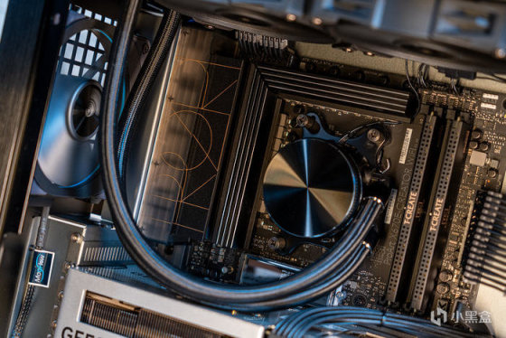 整個機箱的內部也都是以無光鋁合金爲主,水冷的冷排側面、冷頭、顯卡散熱外觀等等都是鋁合金材質