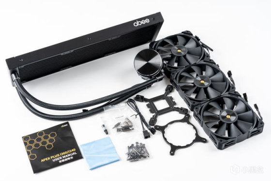 APEX PLUS I360水冷與風扇合體,冷排側面還有abee的棱形logo標識