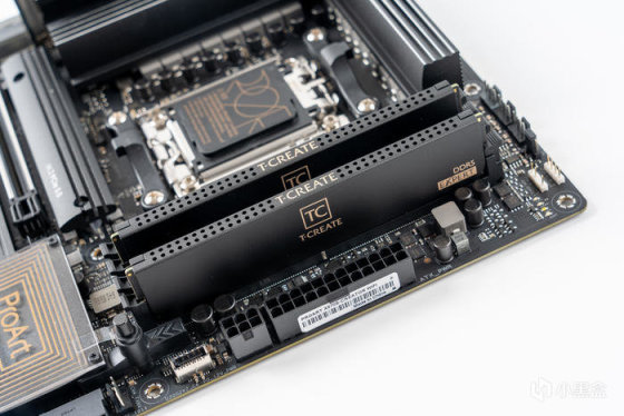PROART系列配合使用的內存是來自十銓科技的 DDR5 6400的64G套裝,看似設計簡約實則爲十銓科技的高端EXPERT 引領者系列,簡約的厚實鋁合金散熱片上標註有TC T-CERATE 右邊標註有DDR5的EXPERT ,是其創作者系列最高端的引領者,內存背面標註有參數爲1.35V電壓,時序爲34-44-44-84,雙面32G的64G套條,頂部一體式孔洞散熱設計,上標有T-CREATE,使用十層PCB板、客製化耐高溫電容、陽極鋁合金散熱片