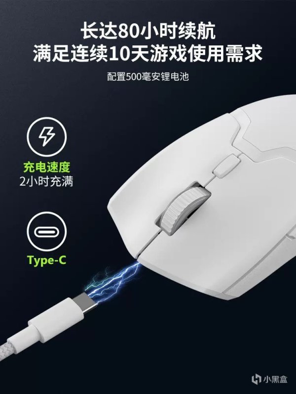 多模连接,内置500毫安锂电池,80小时超长续航时间。