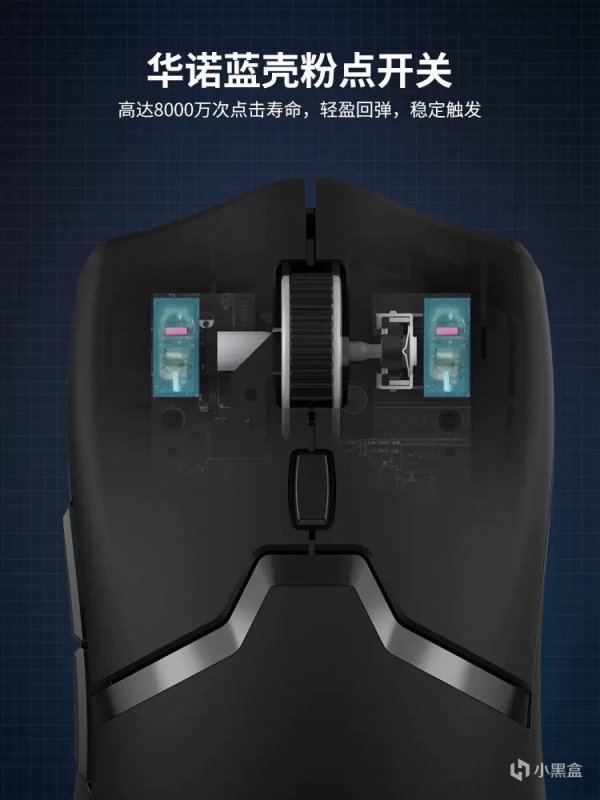 说完了传感器就该说一下鼠标的微动了。传感器决定了这款鼠标的精度等一系列要素。而微动决定了这款鼠标的手感与寿命了。多彩M800PRO的主按钮微动采用了Huano Blue Shell Pink Dot 微动开关。根据官方数据来说,这款微动的额定点击生命为8000万次,拥有极长的点击寿命。稳定使用多年完全没有问题。从点击手感上来讲,这款微动的点击手感非常清脆,回弹反馈也非常有力。我对这款微动是非常满意的。