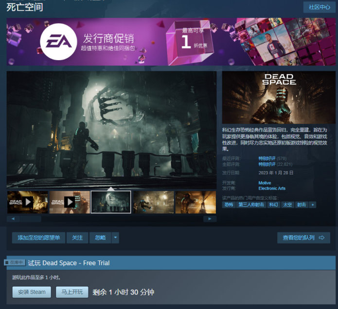 目前《死亡空間》重製版推出90分鐘試玩版,試玩時間內,玩家可以遊玩體驗遊戲的全部內容。 (主打一個速通)