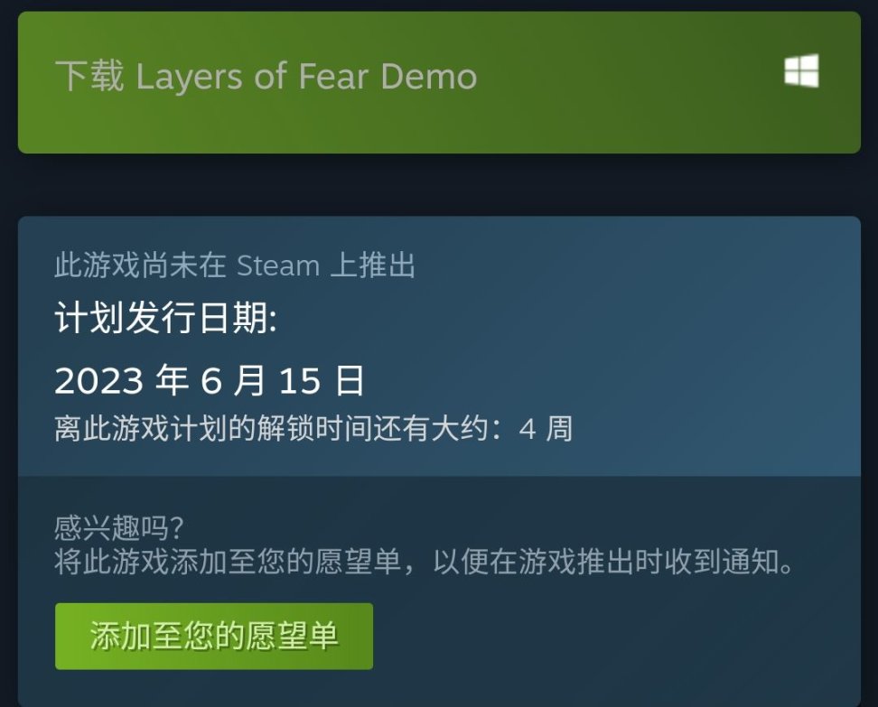 新版層層恐懼還未推出正式版,但提前放出了steam試玩,流程20到30分鐘,喜歡恐怖遊戲的可以體驗一下。