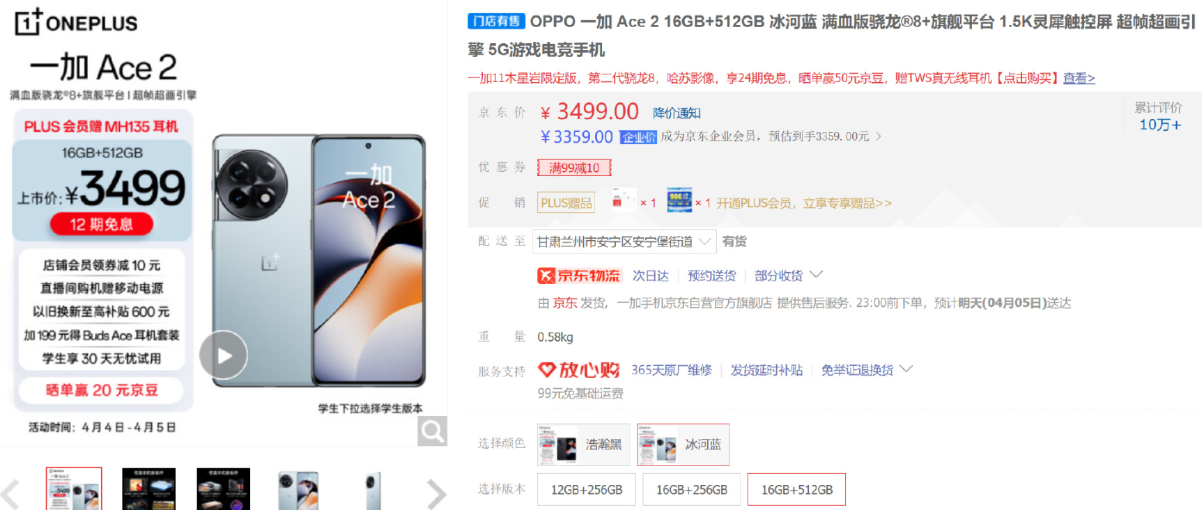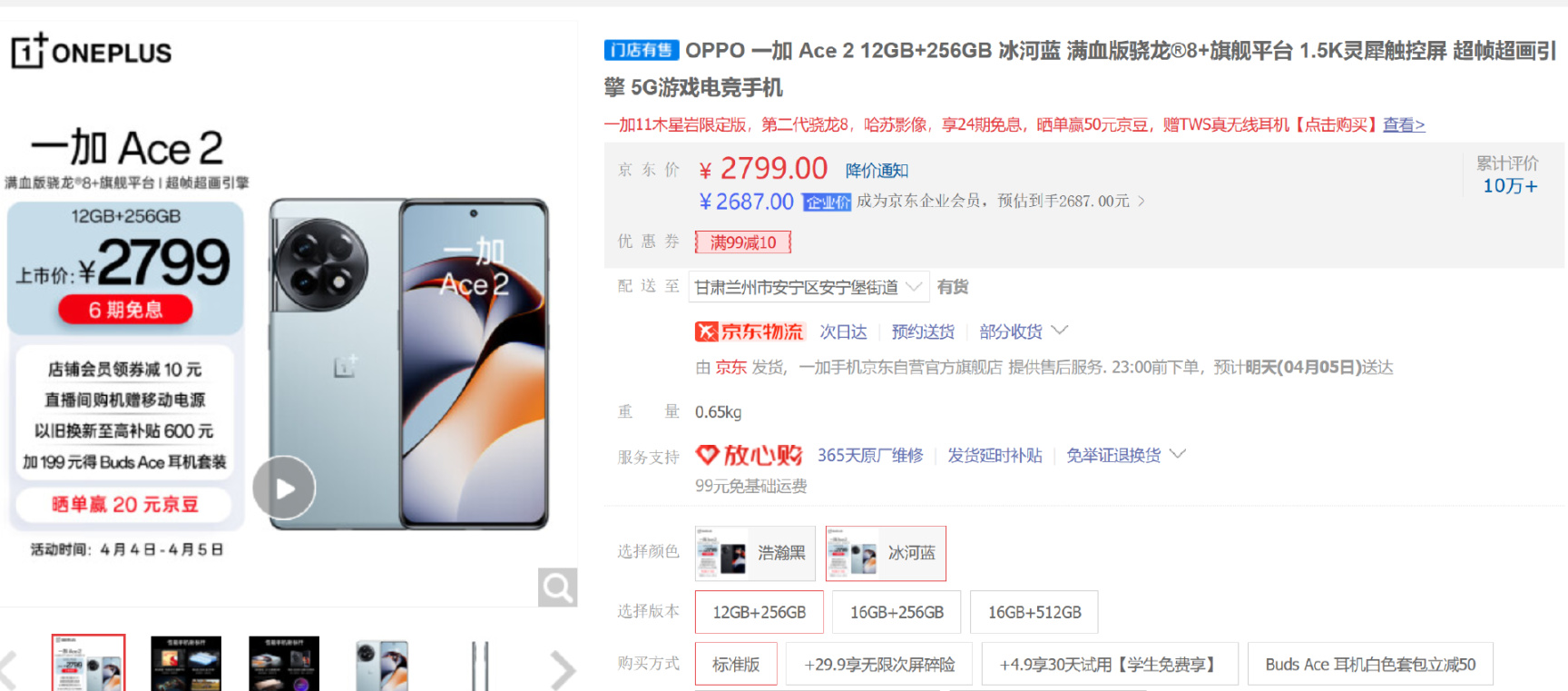 一加Ace2貴100,但企業價2689更便宜。