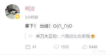 5月18日,排名第7位的柯洁九段战胜了范廷钰九段,而排名第5位的辜梓豪九段输给杨鼎新九段,最后计算小分,柯洁幸运排在第六名,坐上了亚运会的末班车,洁宝太极限了!值得一提的是,去年六人国家队,仅有柯洁、杨鼎新两人留队,赵晨宇九段、杨楷文九段、李钦诚九段和芈昱廷九段从第一轮杀上来,并且在第二轮成功入队,也能体现中国围棋的激烈程度!赛后柯洁发文,拿下! 出线!O(∩_∩)O