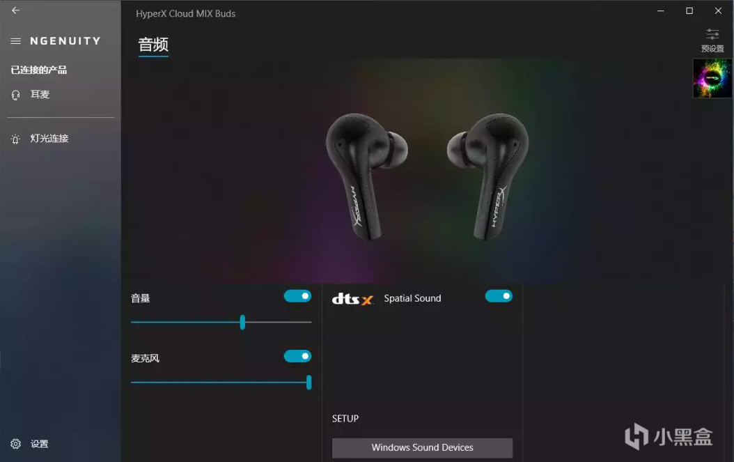 天际真无线游戏耳机在开启HyperX Signature音效与DTS Headphone:X空间音频技术后,耳机整体的还原解析能力会更上一层楼——声音的表现更加的趋于真实立体,耳机的空间氛围感十足,更多的声音细节也让佩戴者在观影娱乐时会有一种身临其境的的沉浸感。