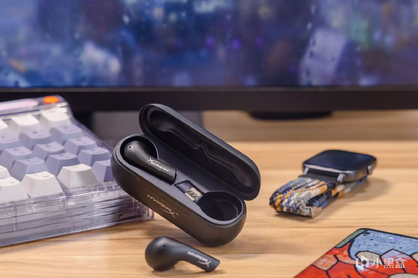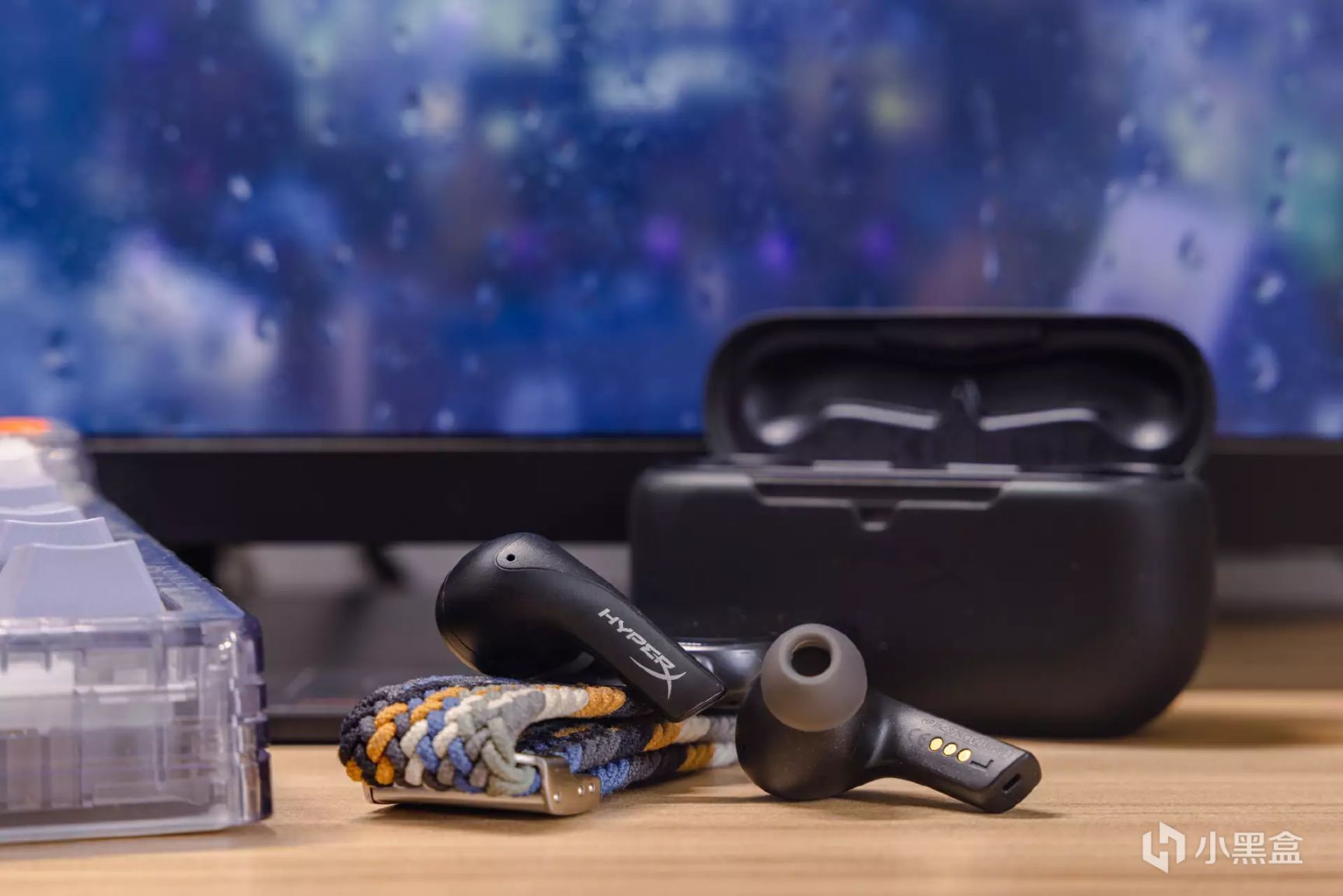 天际真无线耳机的本体采用了常见的入耳式造型,机身整体的线条圆润顺畅显得很是精致,耳柄上还印有白色的“HyperX”LOGO彰显身份。耳机与同收纳仓机身保持一致,也采用了略带亮点颗粒的细磨砂材料,在确保耳机质感的同时也有着不错的防滑表现。
