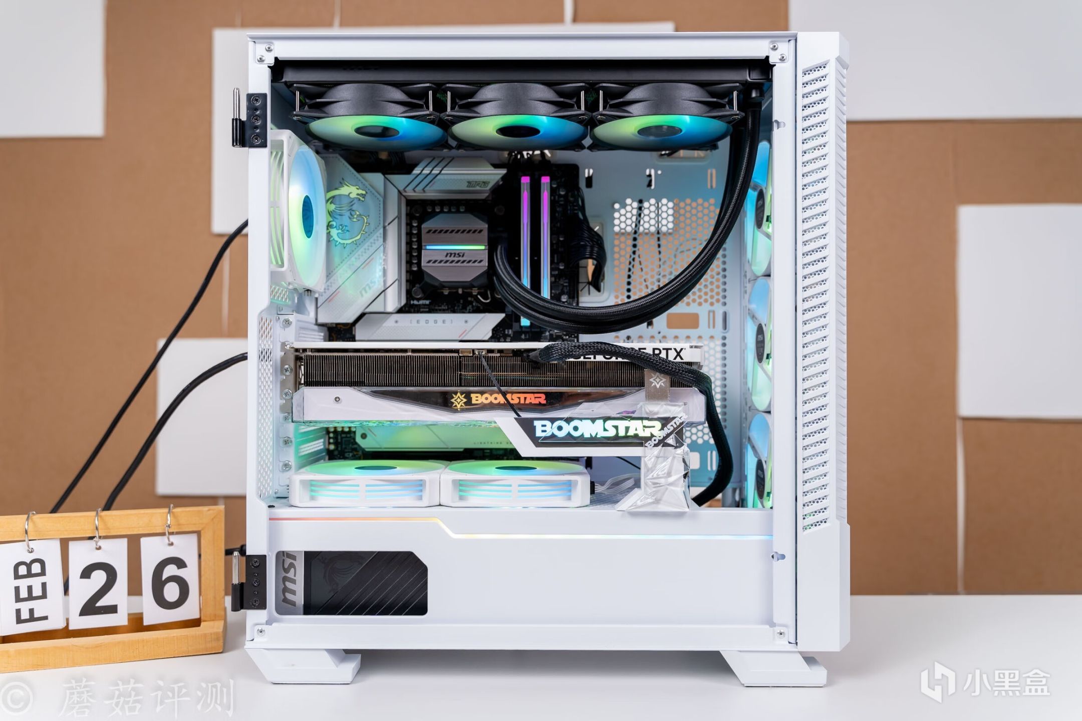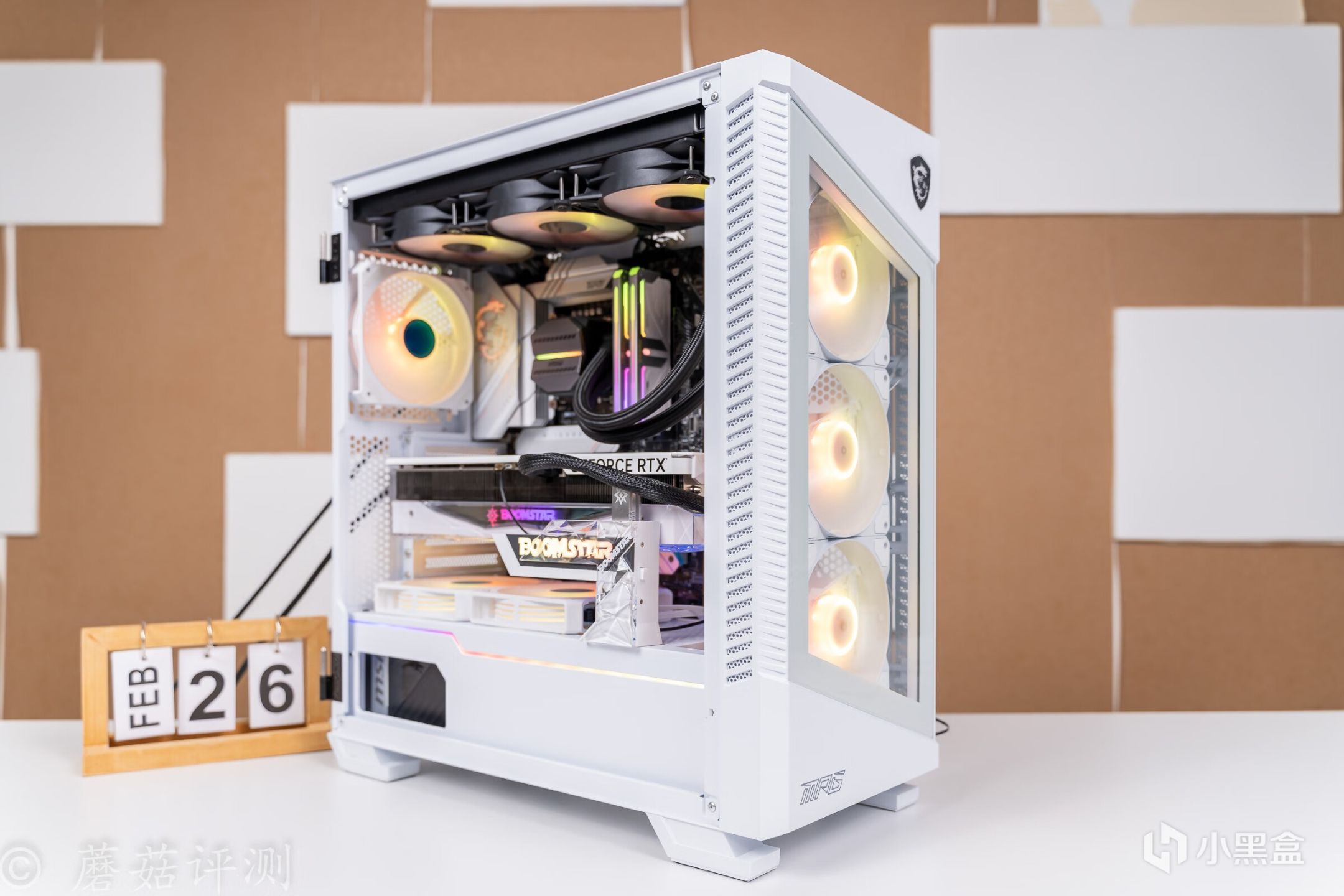 ▼机箱是微星的刀锋100R白色,这款机箱的侧面和正面均有玻璃侧透设计,另外在机箱的前部,还标配了三把支持ARGB灯效的机箱风扇,整体的搭配效果会更加的漂亮。