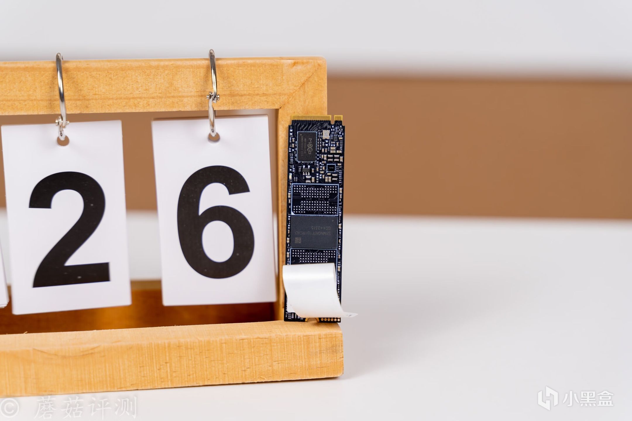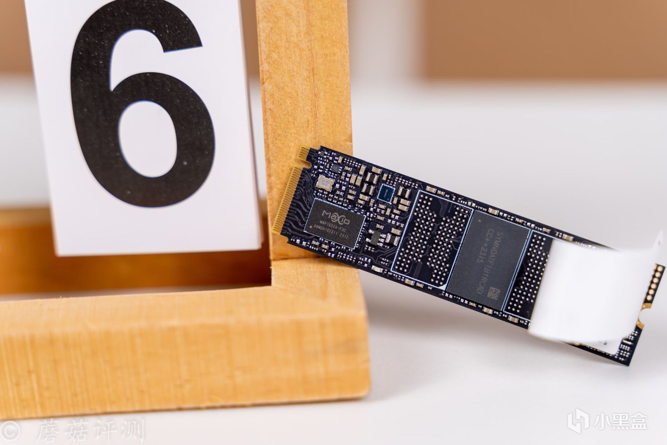 ▼简单的撕开标签,可以看到固态硬盘的主控和存储颗粒。